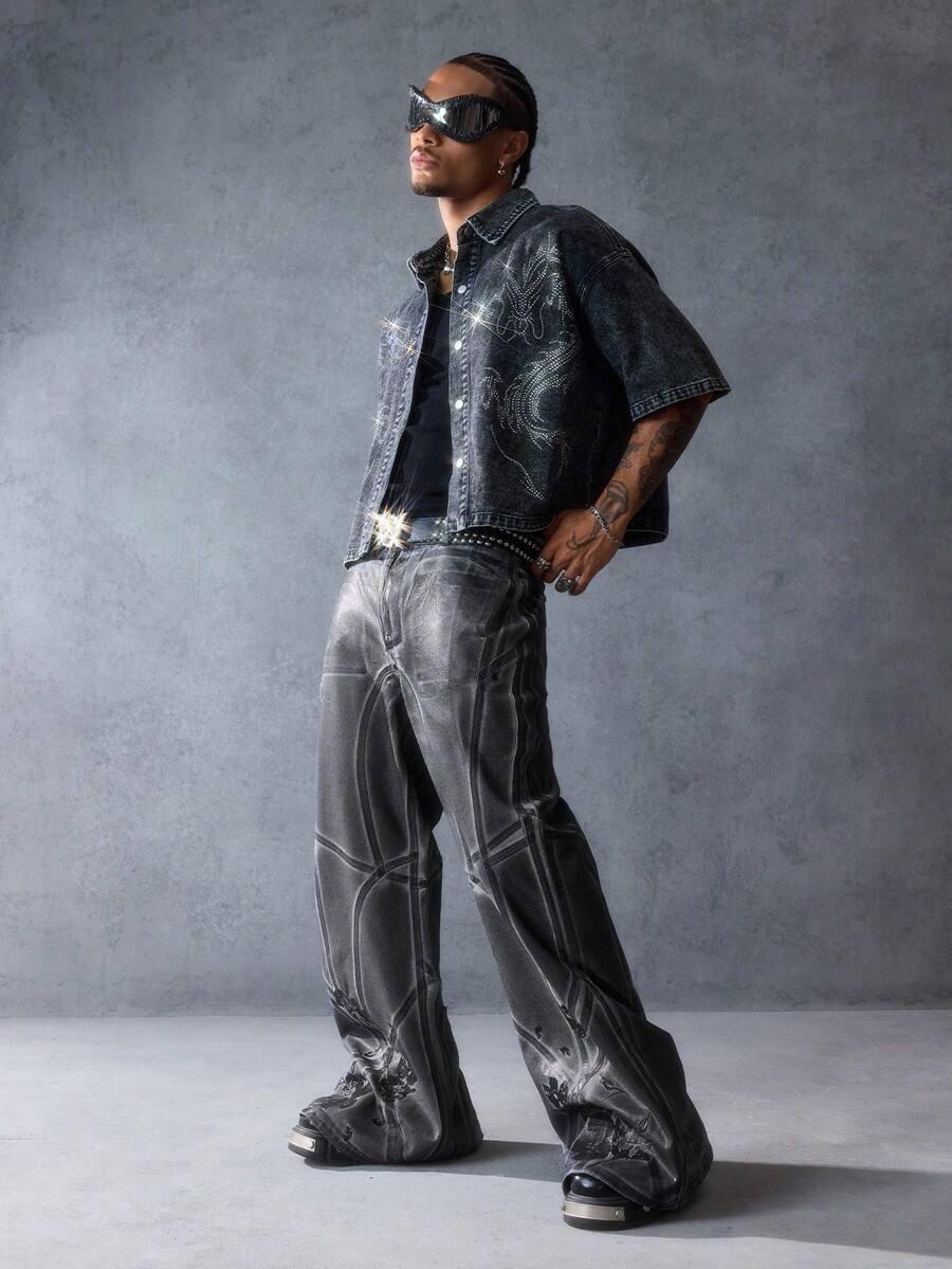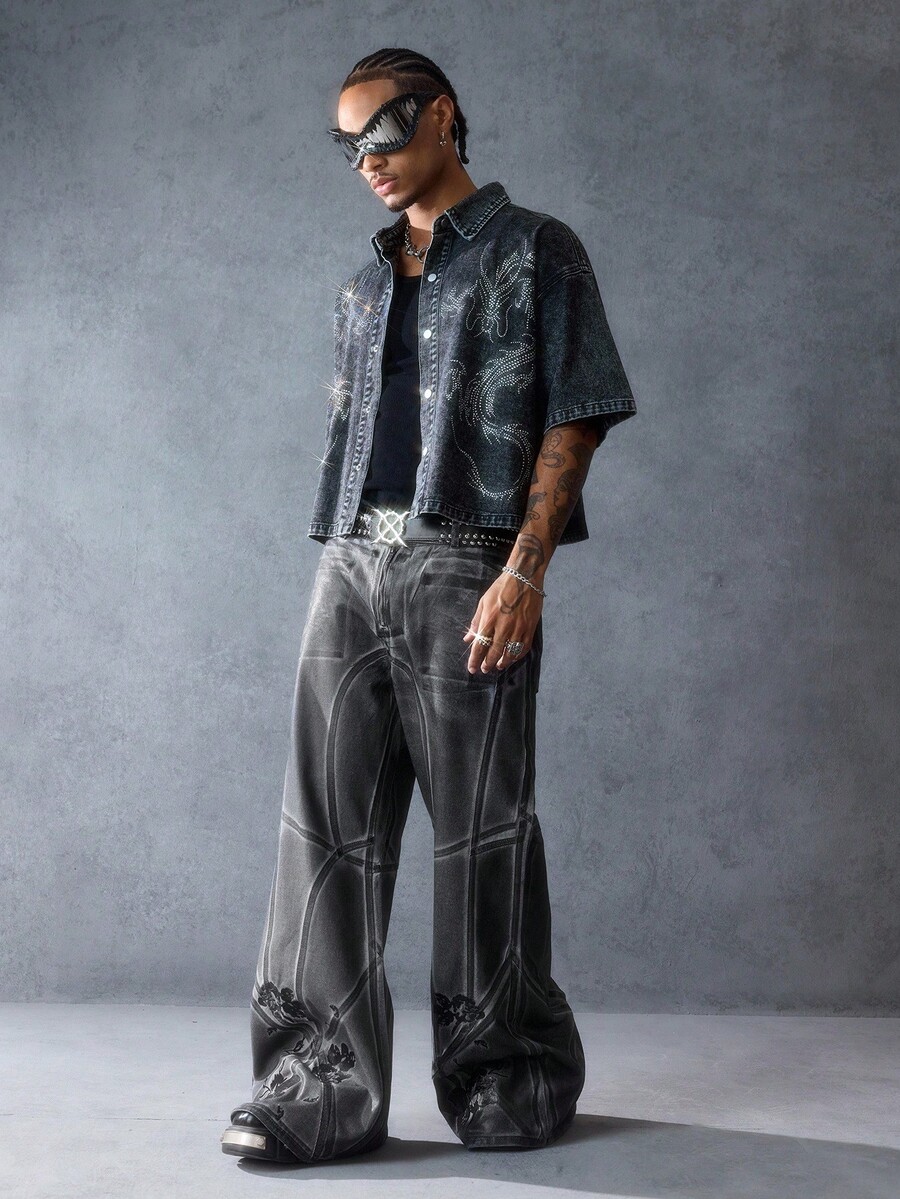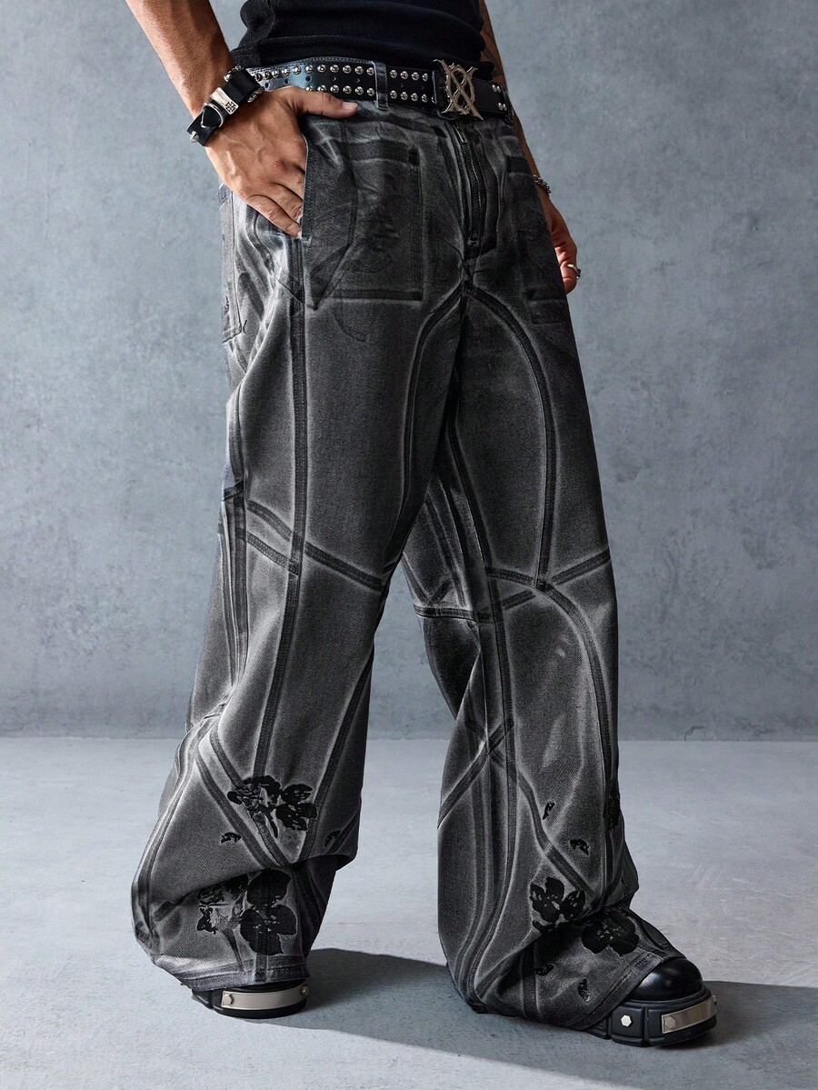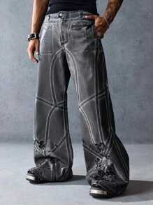 ROMWE Avant Jeans casual larghi e comodi con tasche per uomo