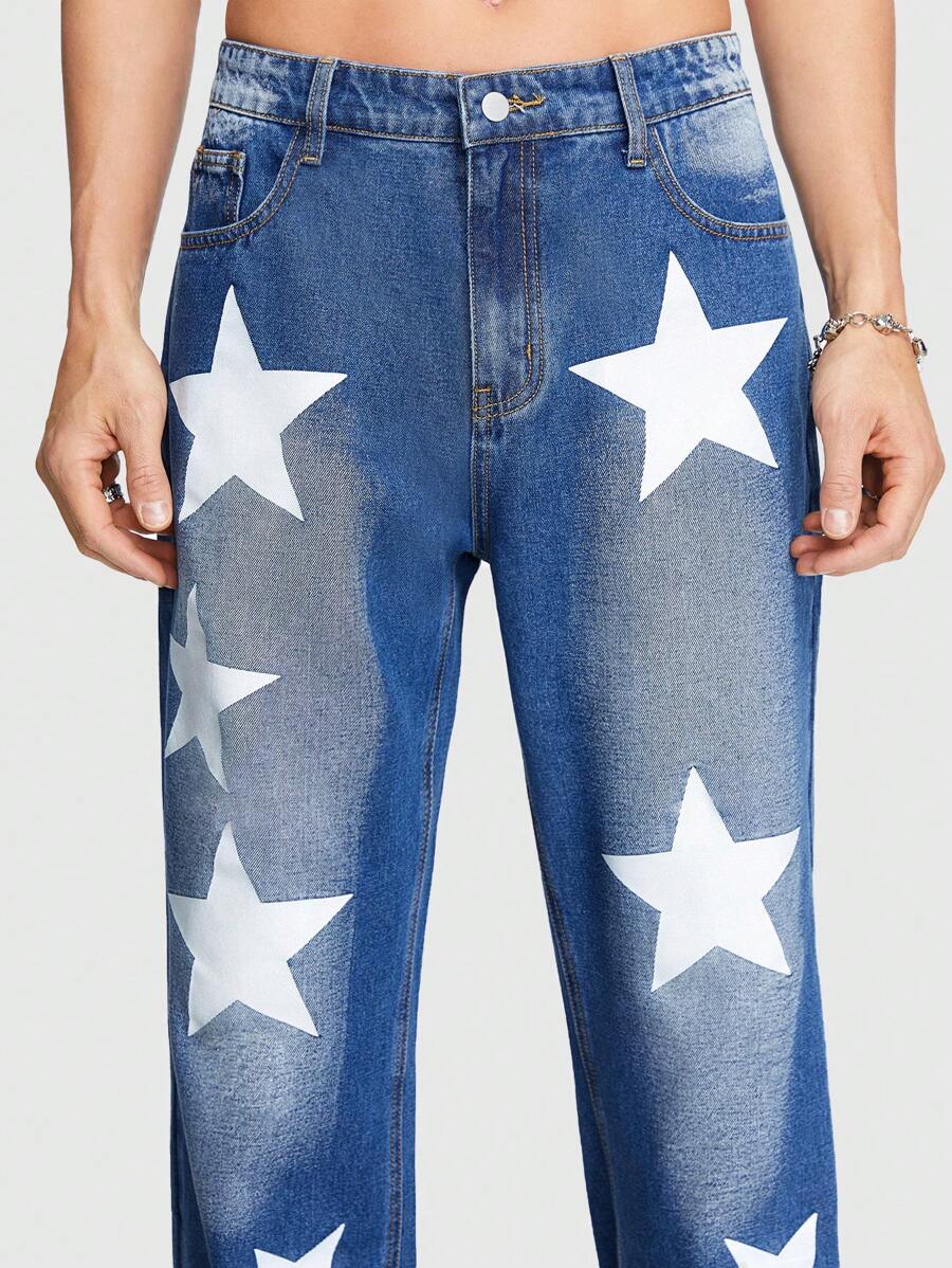 ROMWE Avant Jeans A Gamba Dritta Con Motivo A Stella Per Uomo