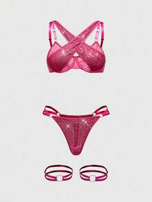 ROMWE Avant Completo reggiseno e slip con ferretto e paillettes per festival musicali, sexy per le donne