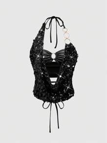 ROMWE Avant Top canotta da donna con schiena scoperta, collo drappeggiato con paillettes, sexy, adatto per festival musicali