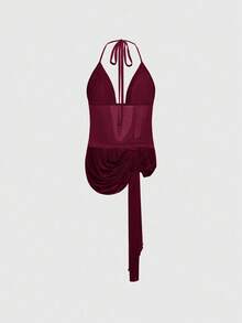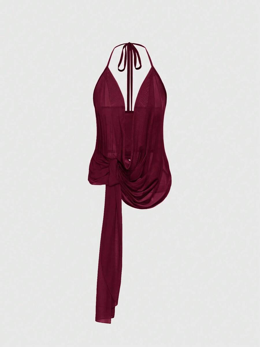 ROMWE Avant Top da donna senza schienale, con scollo drappeggiato e trasparente, adatto per festival musicali