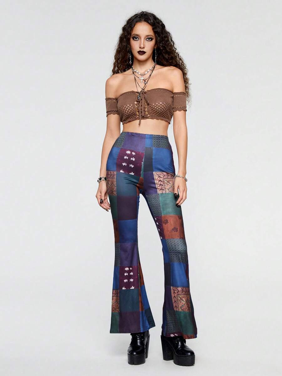 ROMWE Avant Pantaloni svasati stampa patchwork