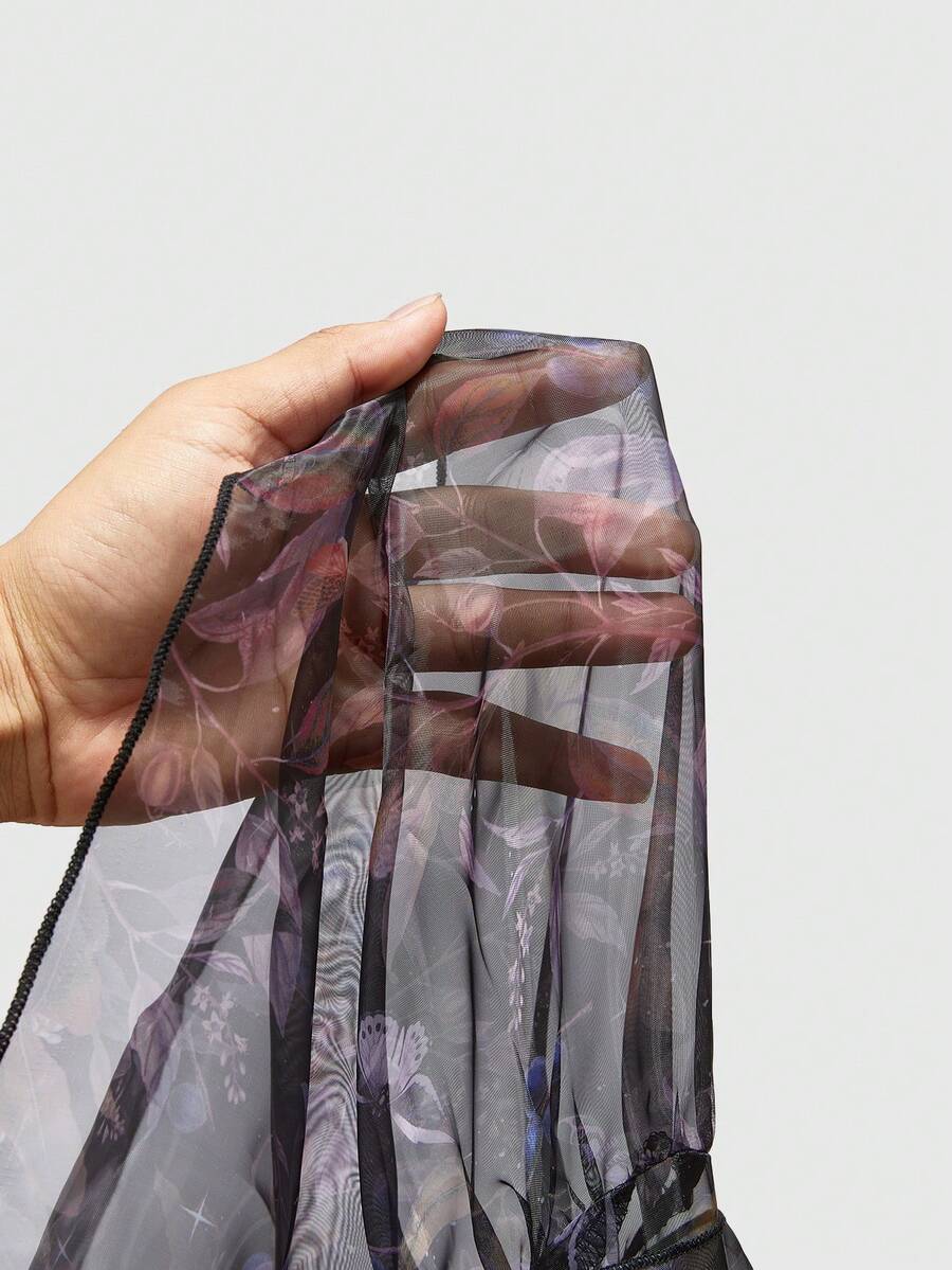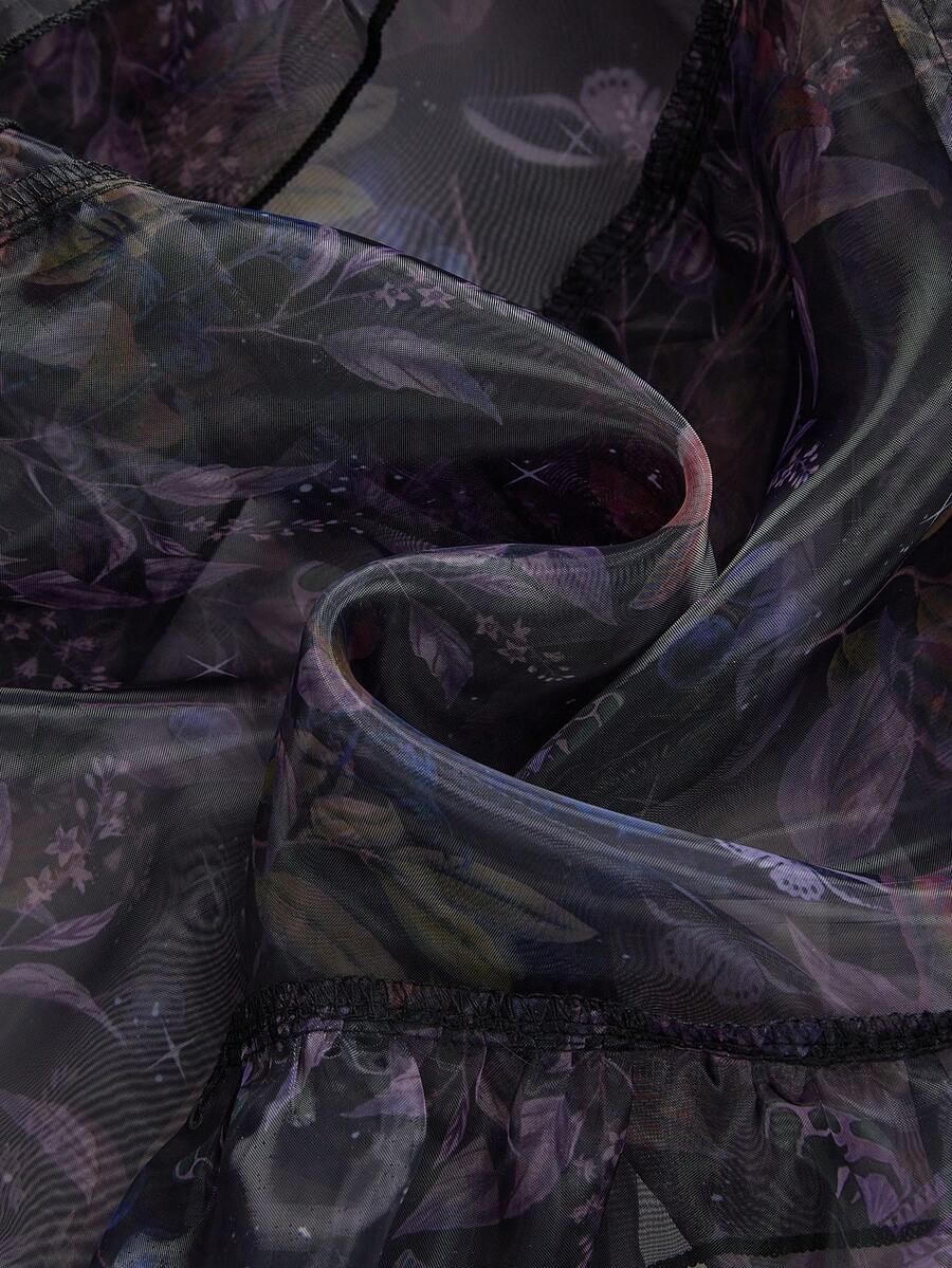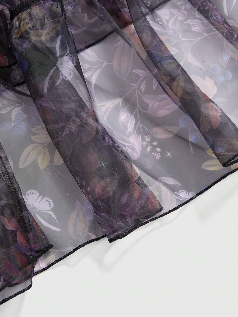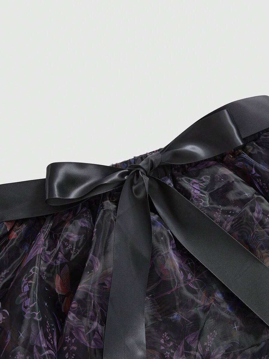ROMWE Avant Gonna vintage plissettata con vita alta e motivo floreale, in stile palazzo, taglie forti