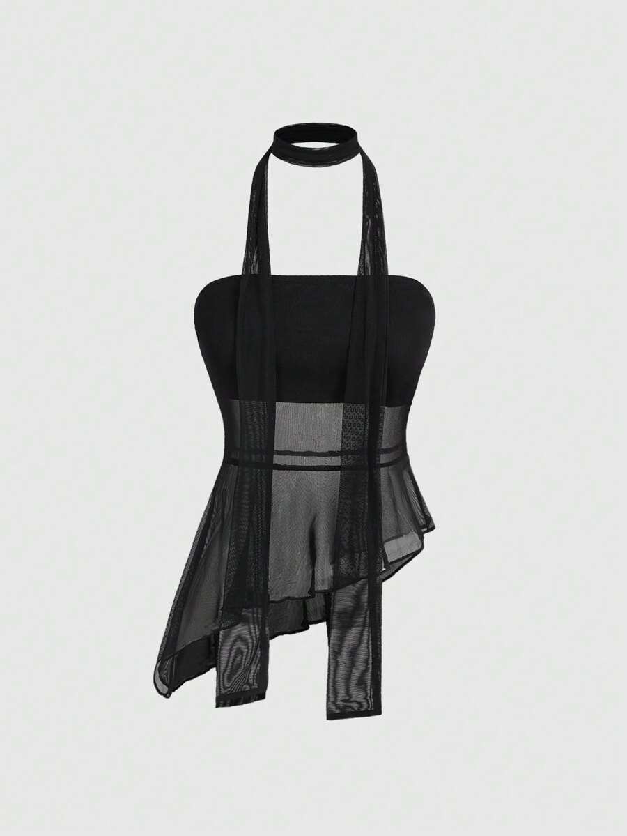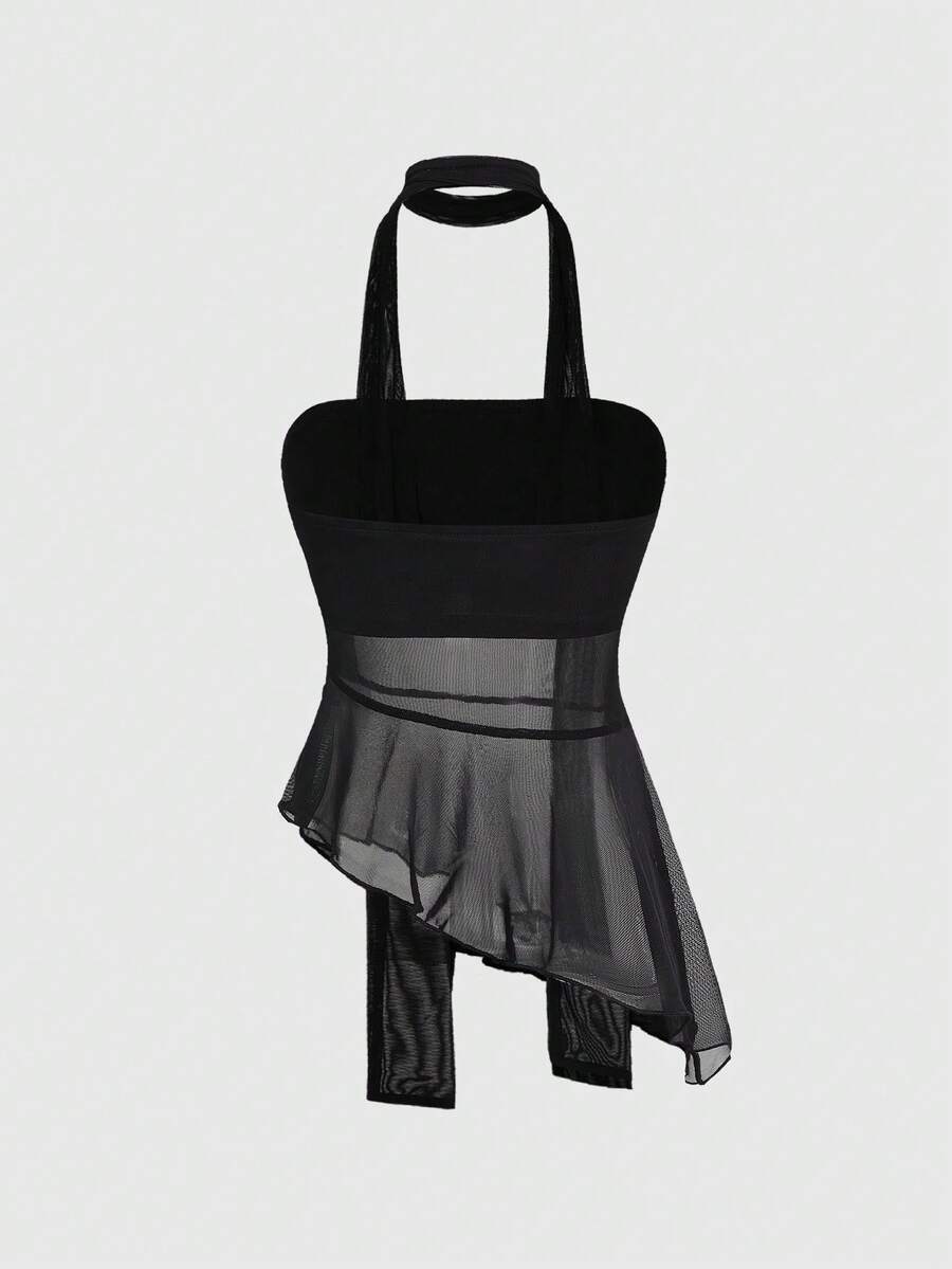 ROMWE Avant Top fasciante asimmetrico e trasparente sexy per donne