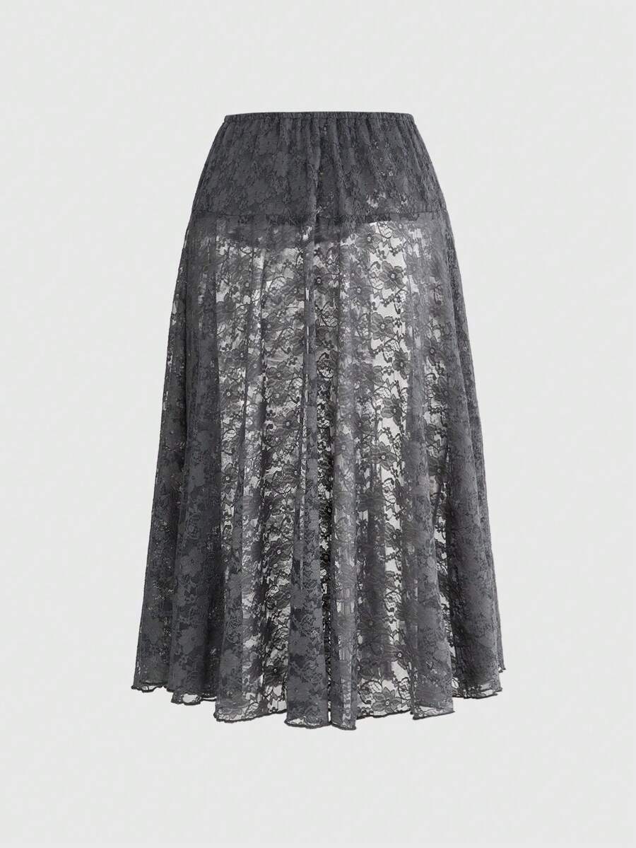 ROMWE Avant Gonna aderente in pizzo trasparente e con spacco sexy per donne
