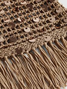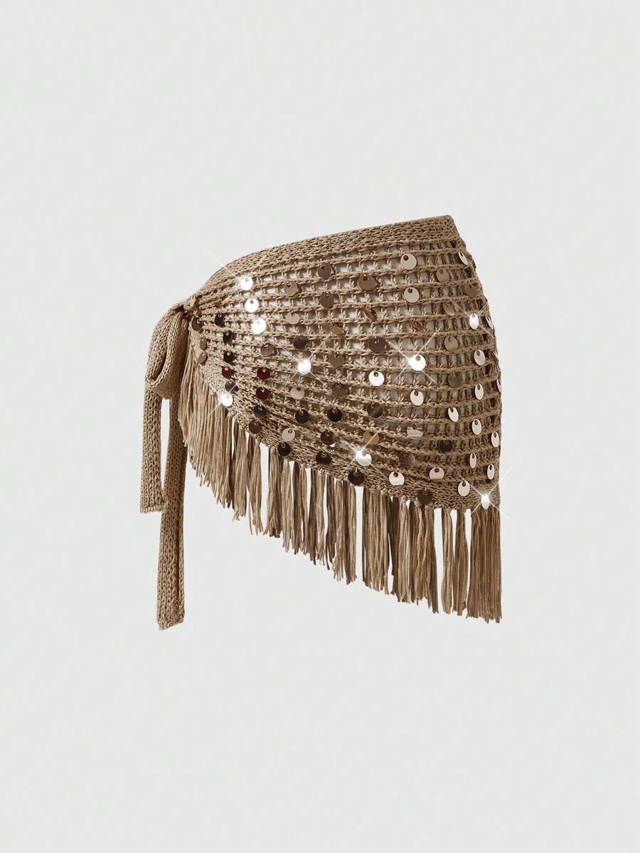 ROMWE Avant Maglione da donna con paillettes asimmetriche e frange, gonna a crochet sexy con laccio laterale, adatta per spiaggia e vacanza