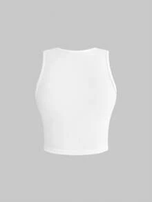 ROMWE Avant Top corto aderente senza maniche con ricamo a mela, stile casual