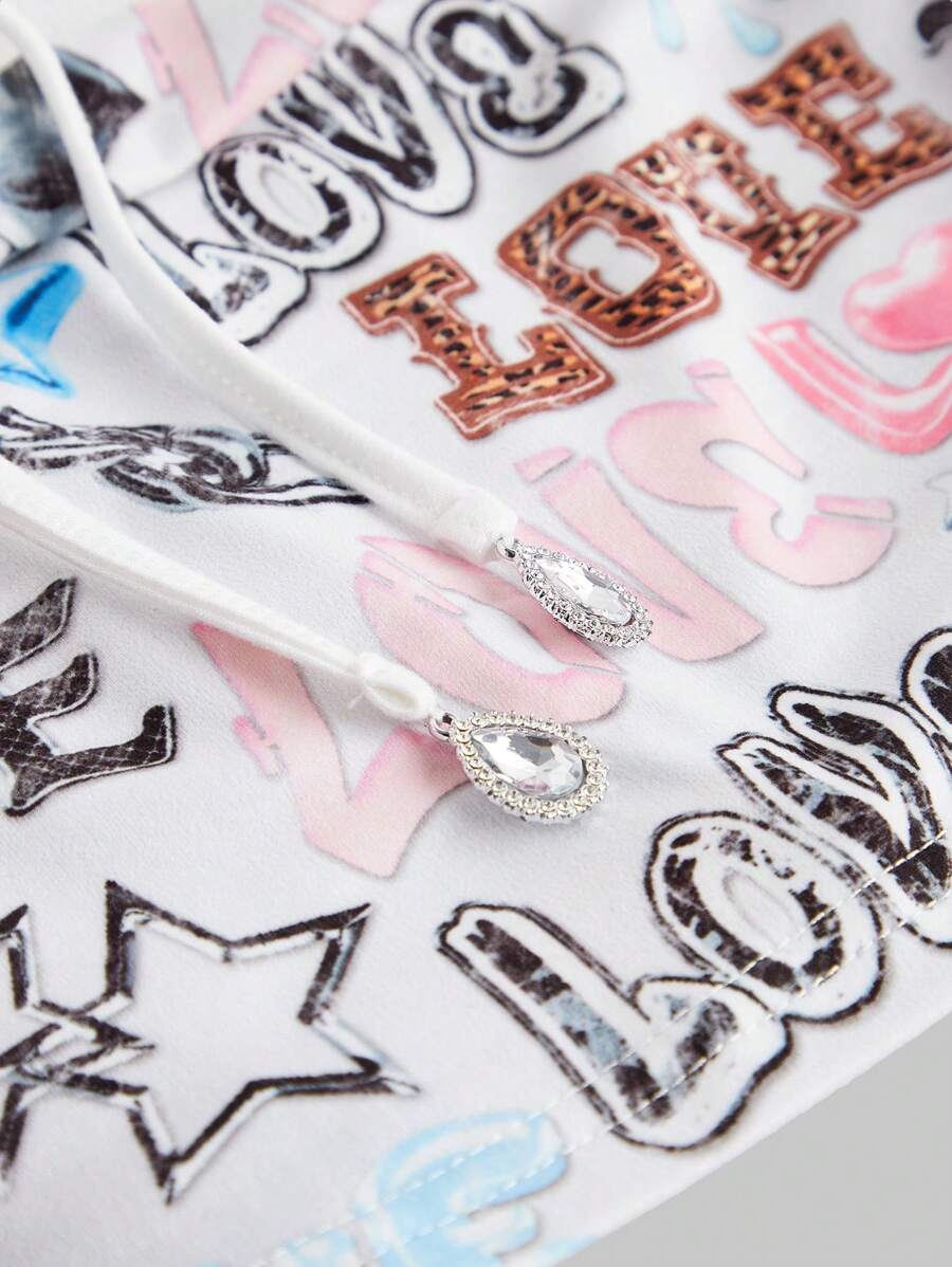 ROMWE Avant Canotta corta da donna con stampa slogan "Love" dello stile di sottocorrente Y2K Millennium