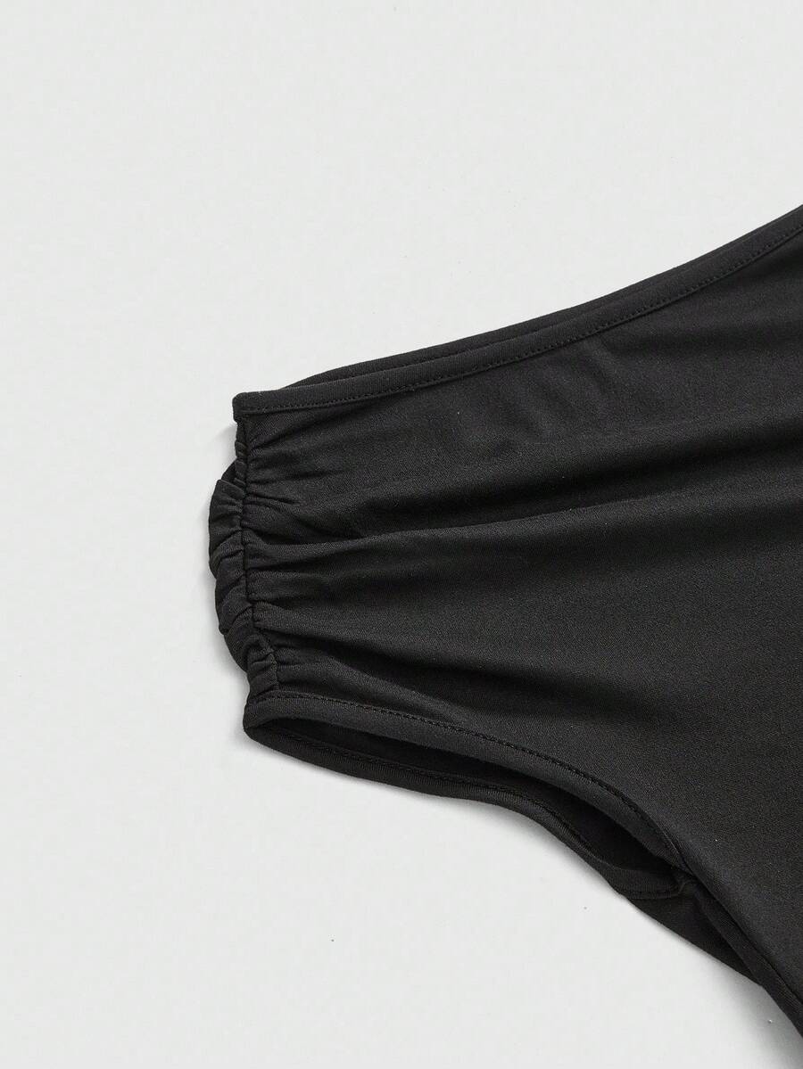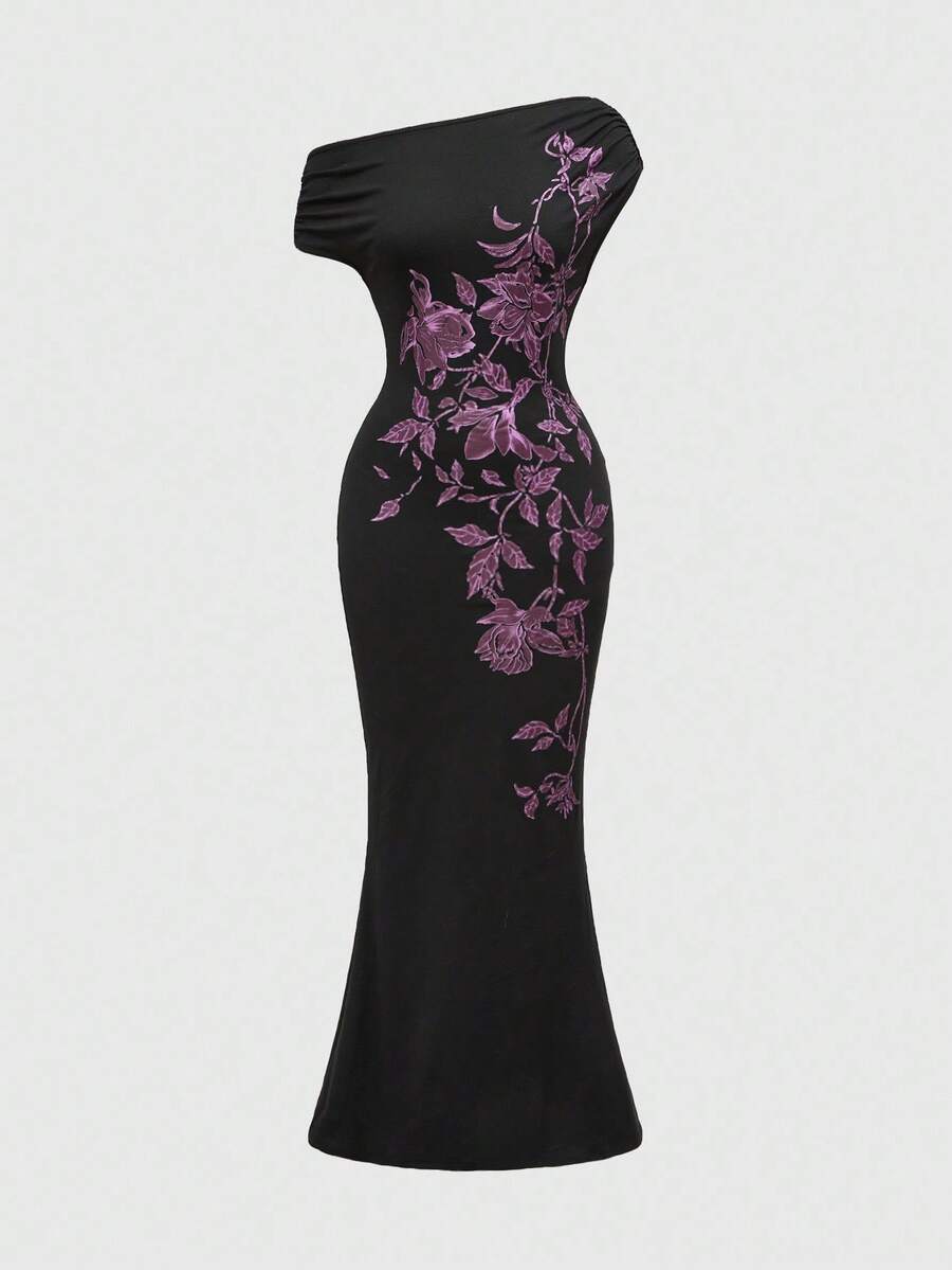 ROMWE Avant Abito aderente asimmetrico con volant e stampa floreale, elegante