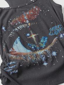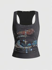 ROMWE Avant Canotta unisex da donna in stile retrò baddie, con stampa cielo stellato e borchie