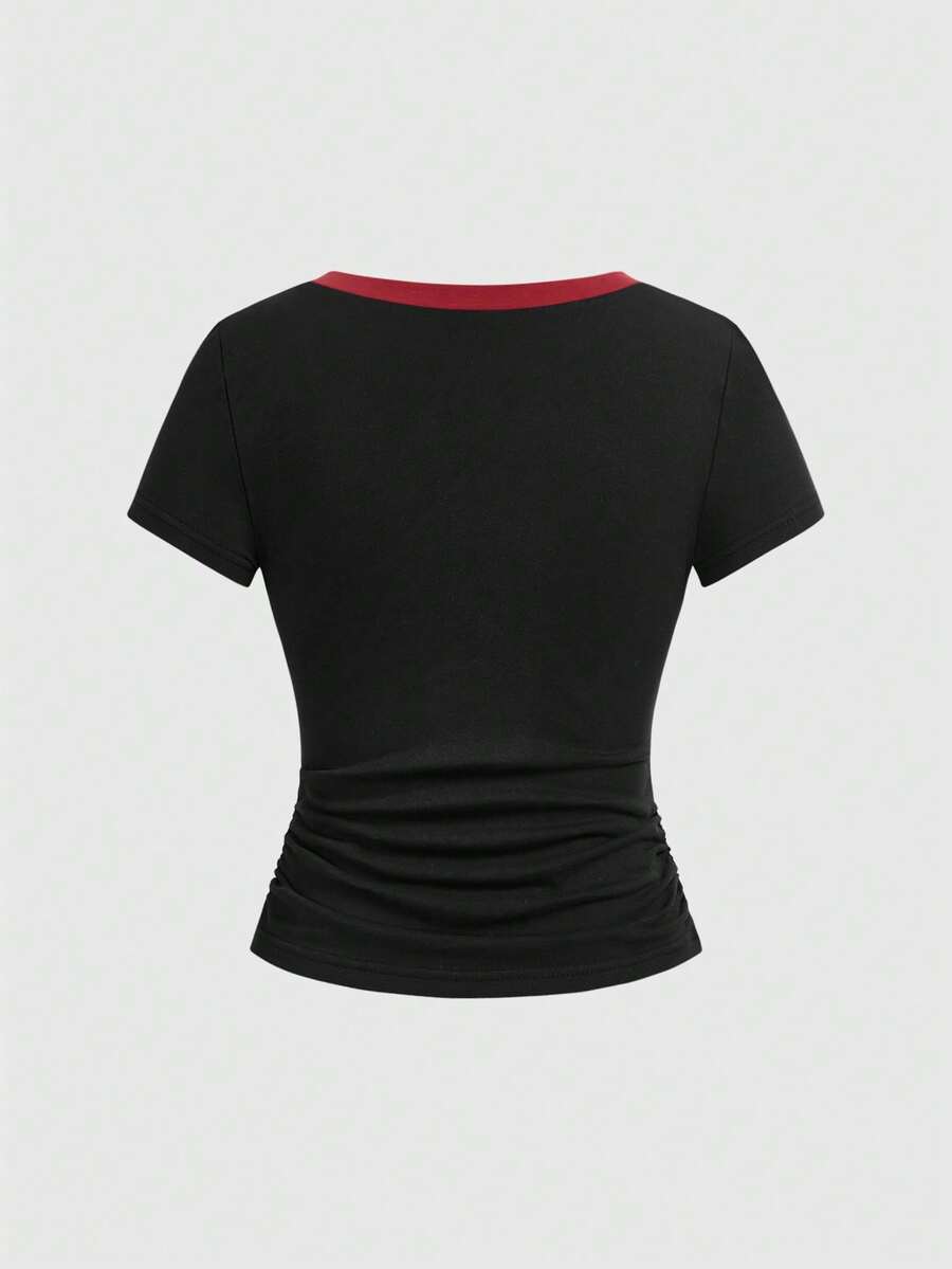 ROMWE Avant Maglietta da donna stile cinese retrò 2 in 1 con stampa di dragone e nuvole, scollo aperto
