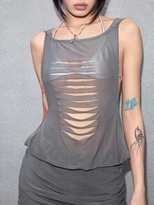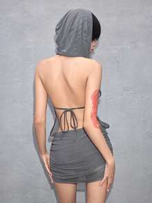 ROMWE Avant Abito mini super corto da donna con scollo a V profondo e cappuccio, in stile trasparente Y3K