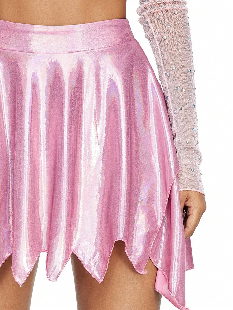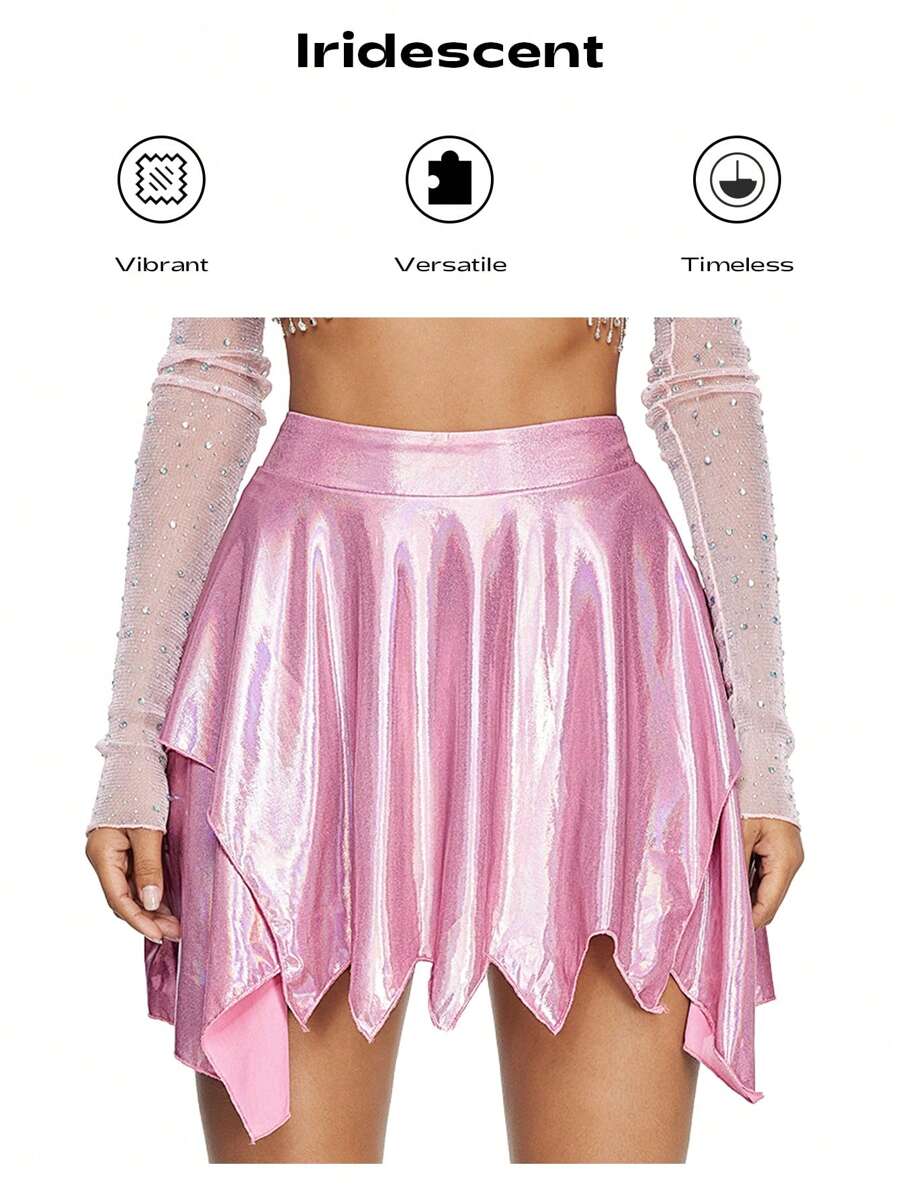 ROMWE Avant Gonna asimmetrica in tessuto laser di moda estiva per le donne, adatta per festival rave