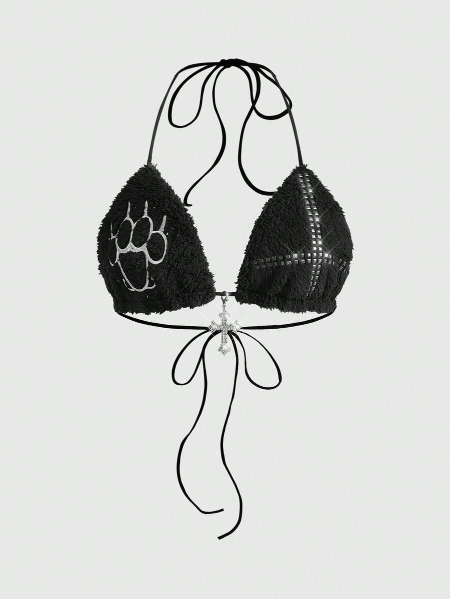 ROMWE Avant Canotta bikini Y2K autunno/inverno con ricami, strass e borchie, sexy e pelosa