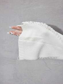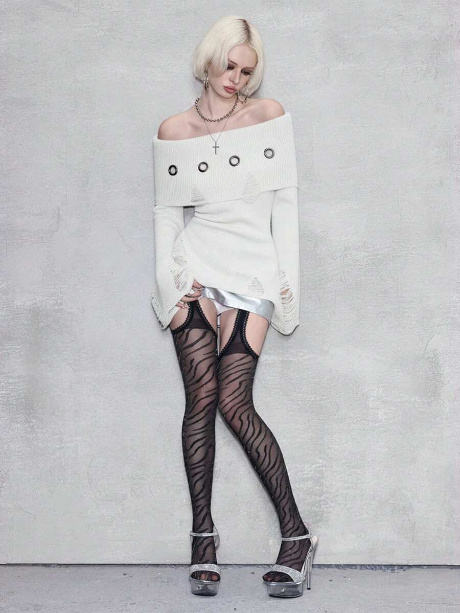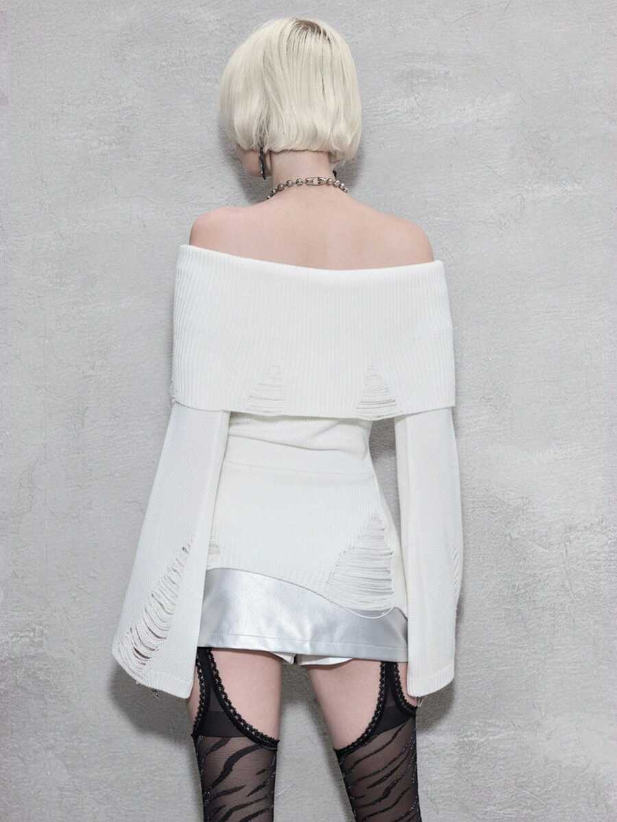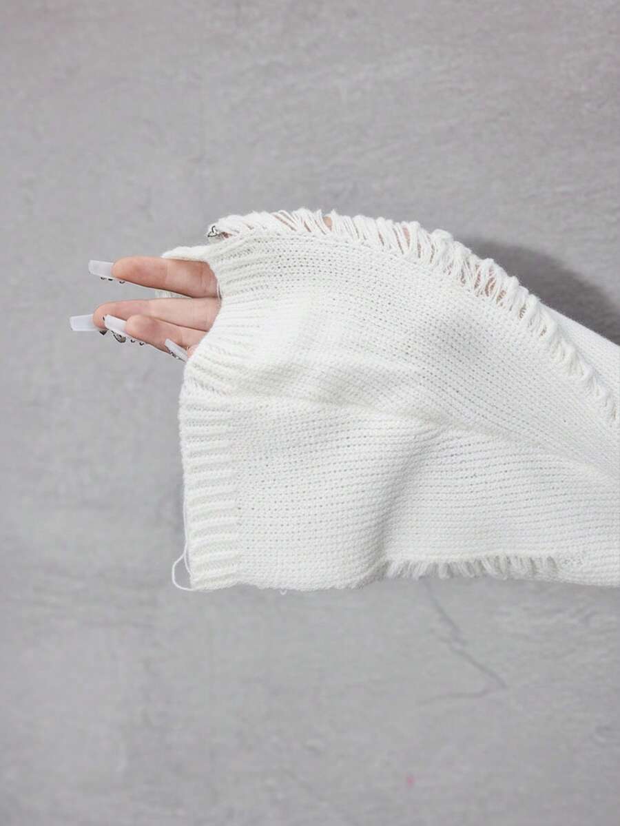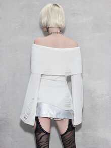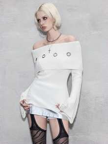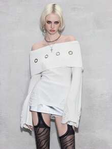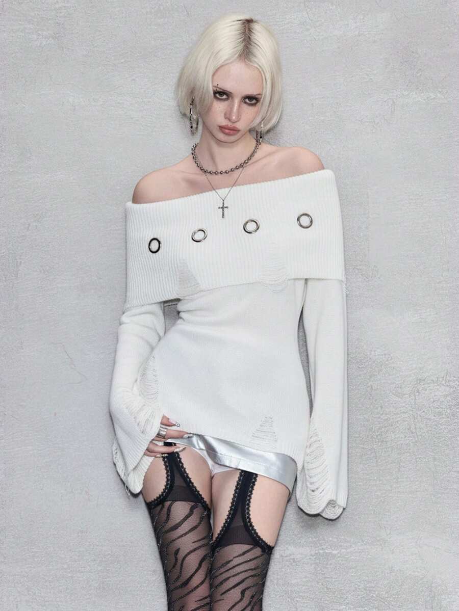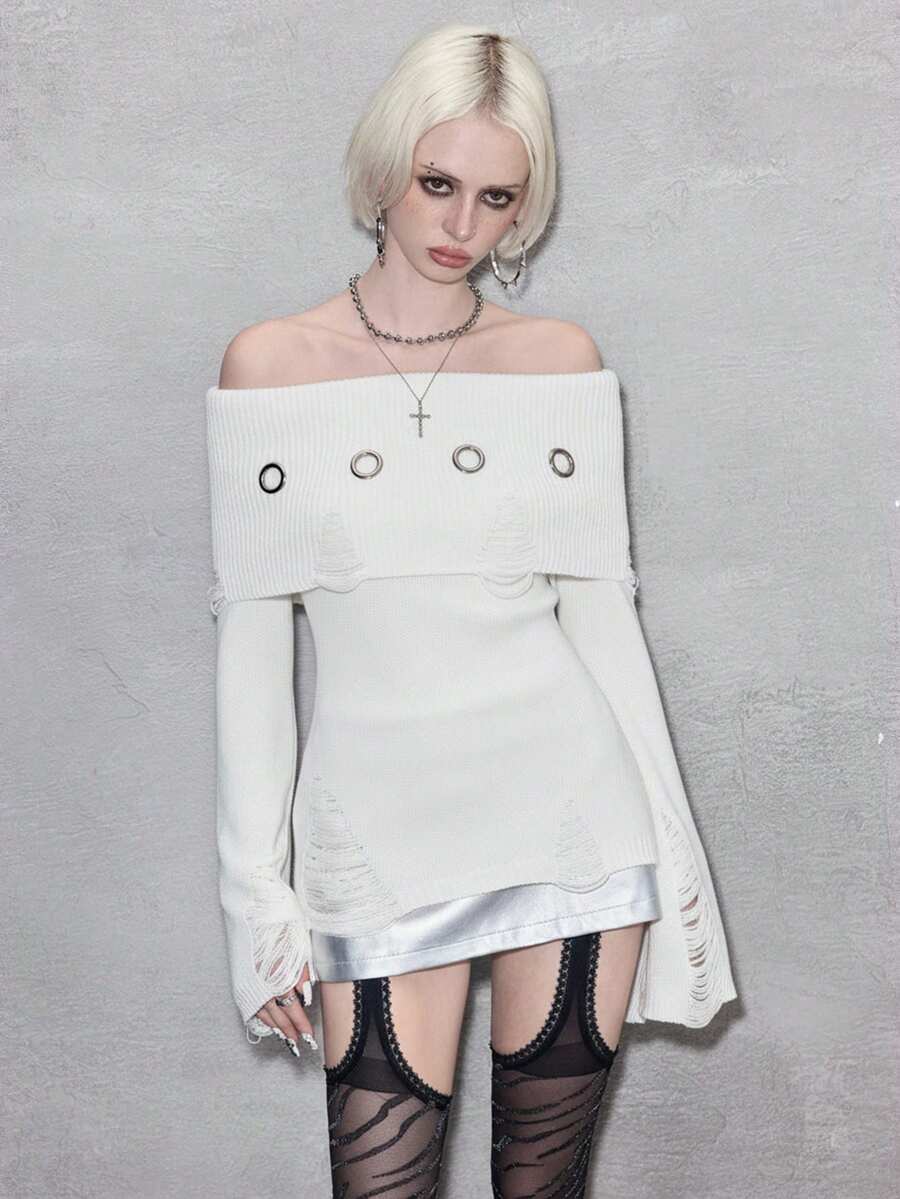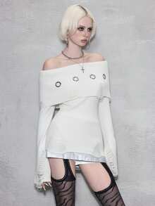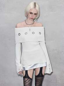ROMWE Avant Maglione con spalle scoperte, maniche a sbuffo, design strappato, vita stretta, accenti con occhielli metallici in stile punk Y2K