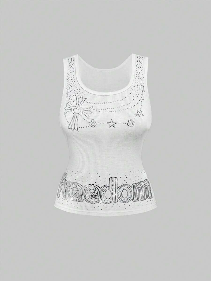 ROMWE Avant Top canottiera con grafica di "Hot Girl" in inglese, impreziosita da strass a croce, in stile Y2K, per donne