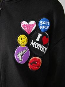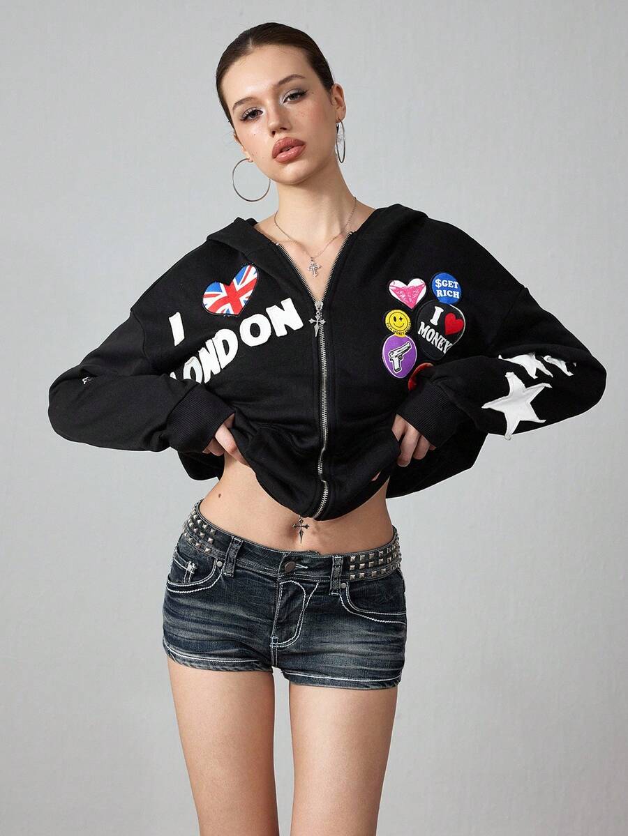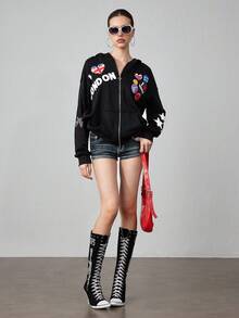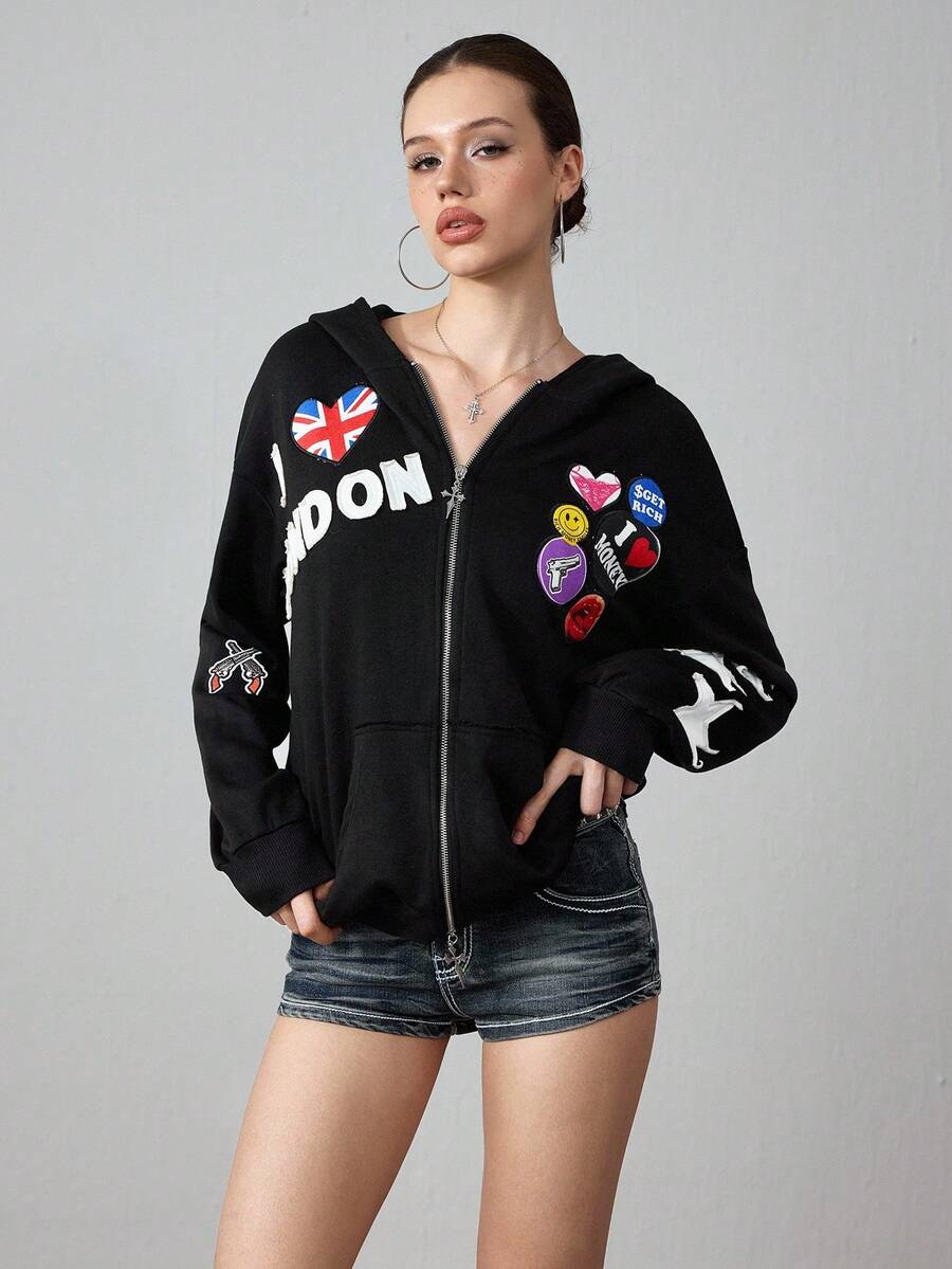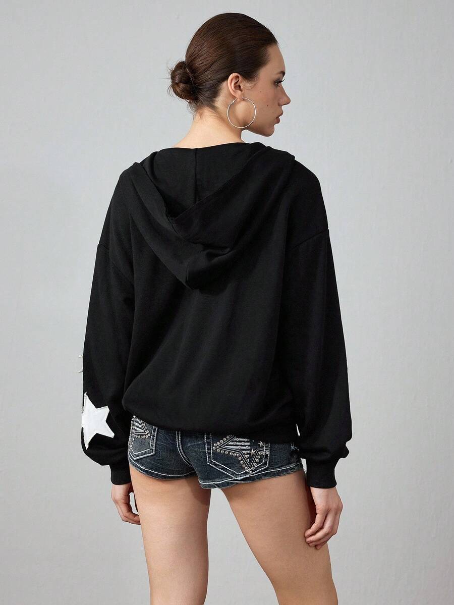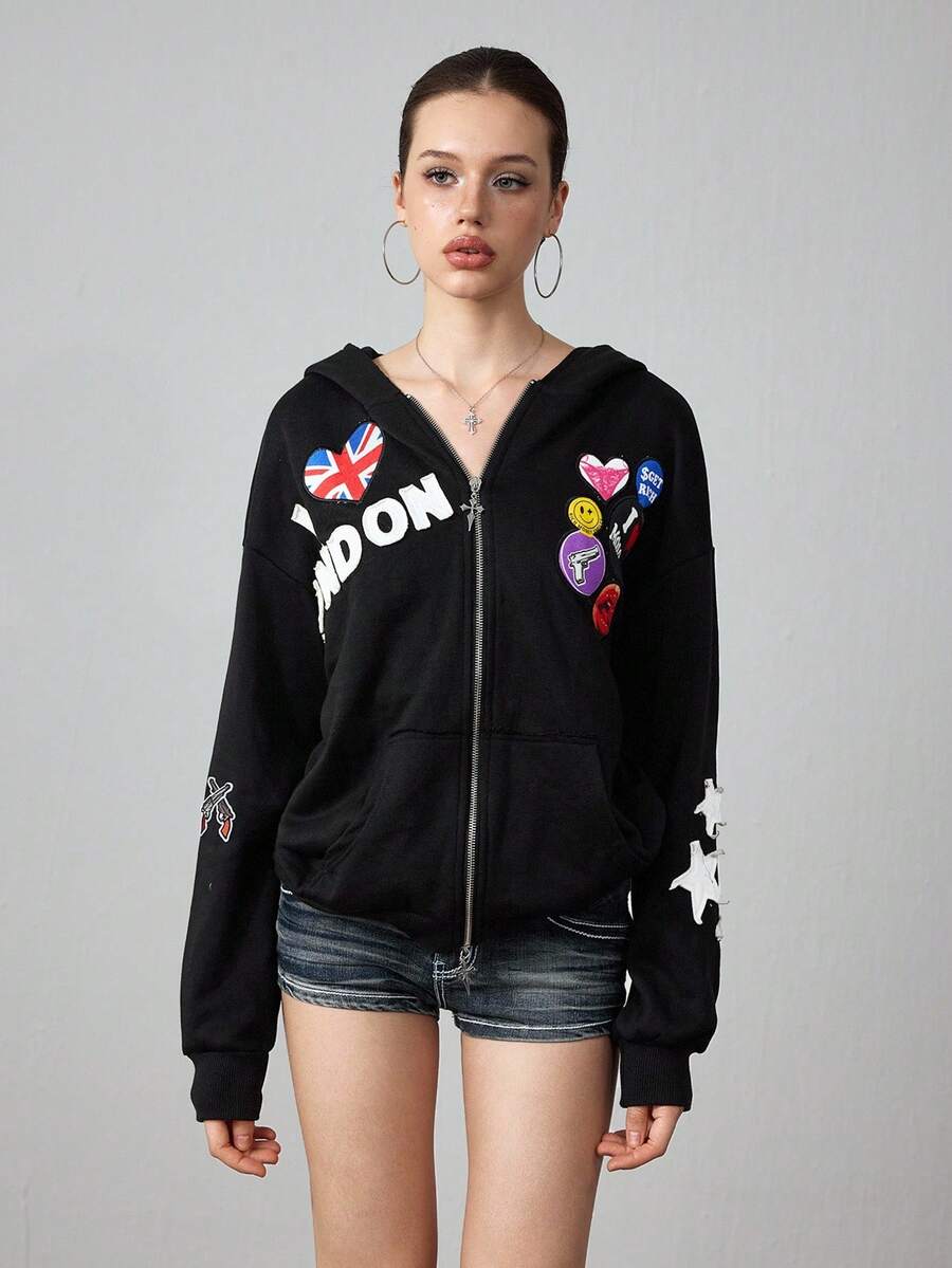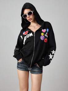 ROMWE Avant Felpa con cappuccio oversize casual con stampa della bandiera americana in stile Y2K streetwear per donna