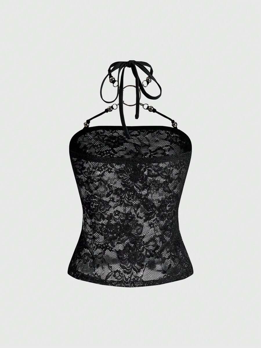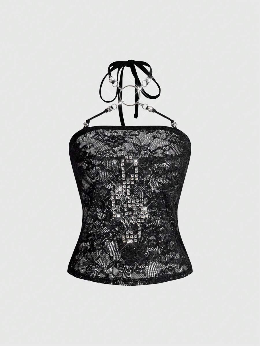 ROMWE Avant Blusa trasparente e sexy con note musicali e borchie, in stile Y2K subcultura, per donne