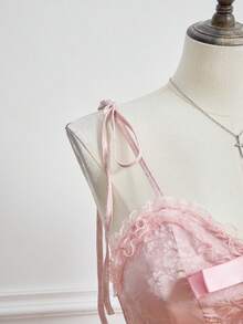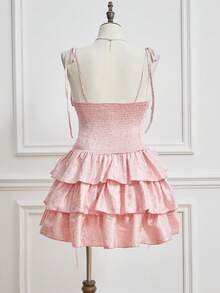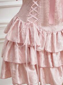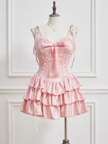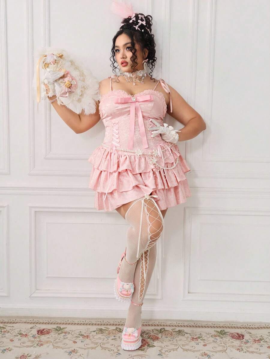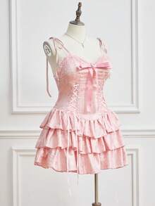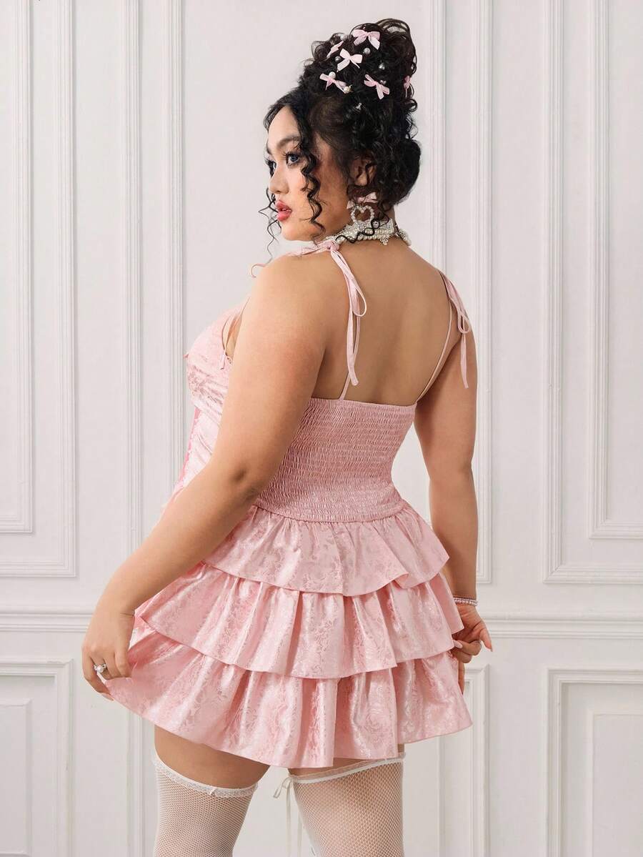 EDITION Vestito mini da donna taglie comode in stile vintage, romantico, con decorazione a fiocco in nastro e balze a più strati sul fondo