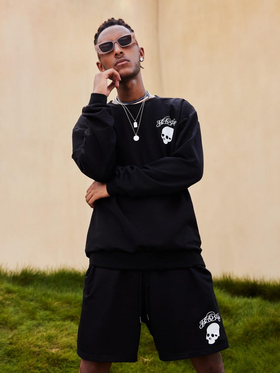 ROMWE Limited Felpe lettere con grafica cranio & Shorts con coulisse