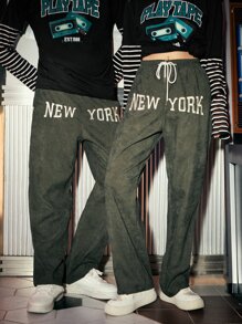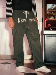 ROMWE UNISEX 1 pezzo Pantaloni con ricamo lettera con coulisse