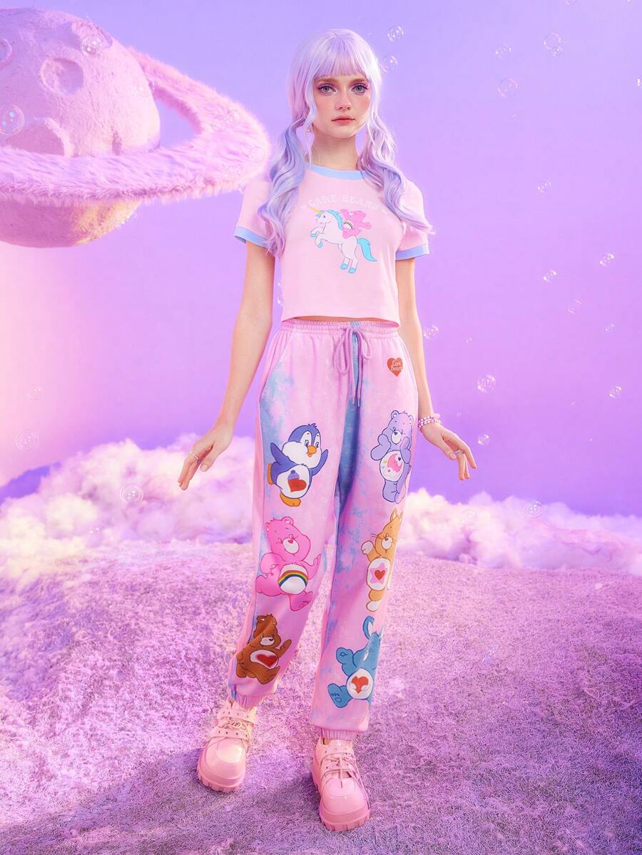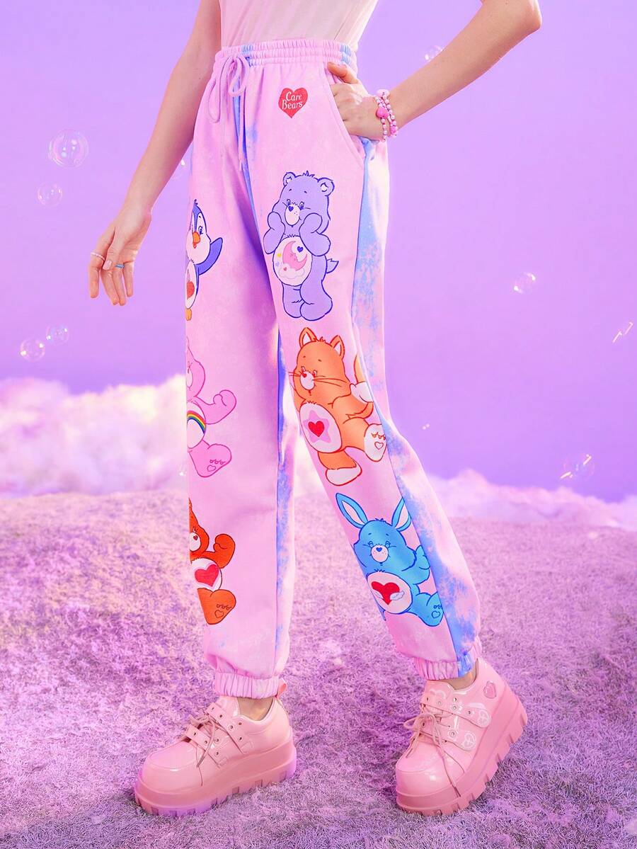 ROMWE X Care Bears Pantaloni da jogging con stampa orso fumetto con coulisse