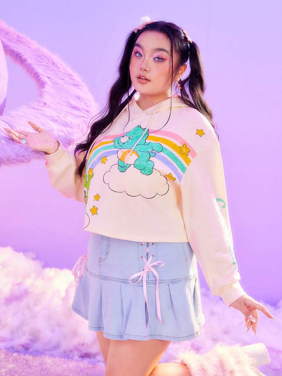 ROMWE X Care Bears Felpa con cappuccio corta con stampa fumetto con coulisse