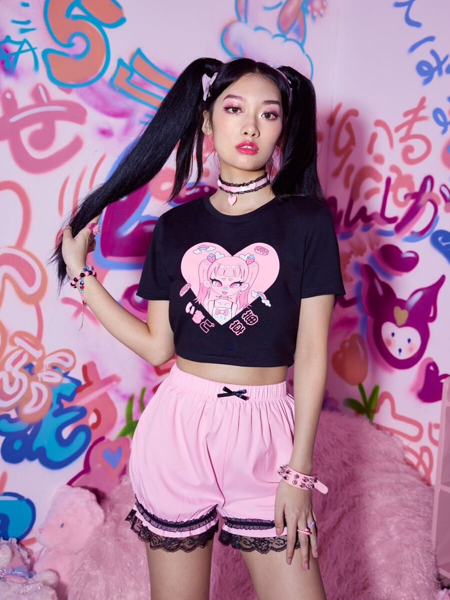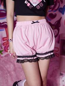 Anime Shorts pizzo a contrasto con decorato fiocco