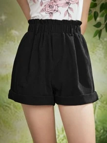 Fairycore Shorts vita a volant sovrapposti di velluto a coste