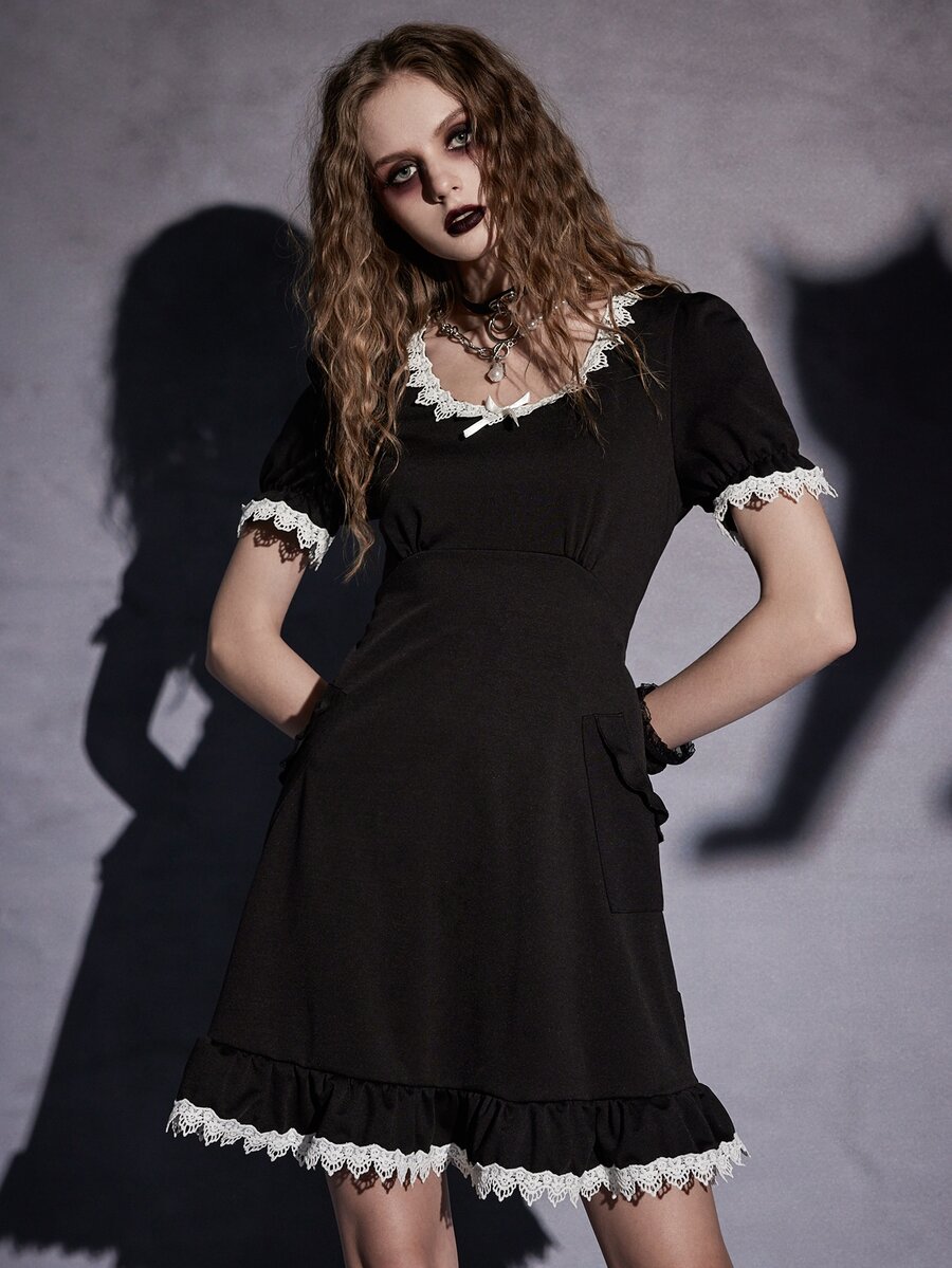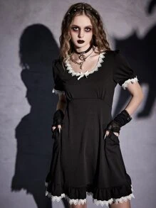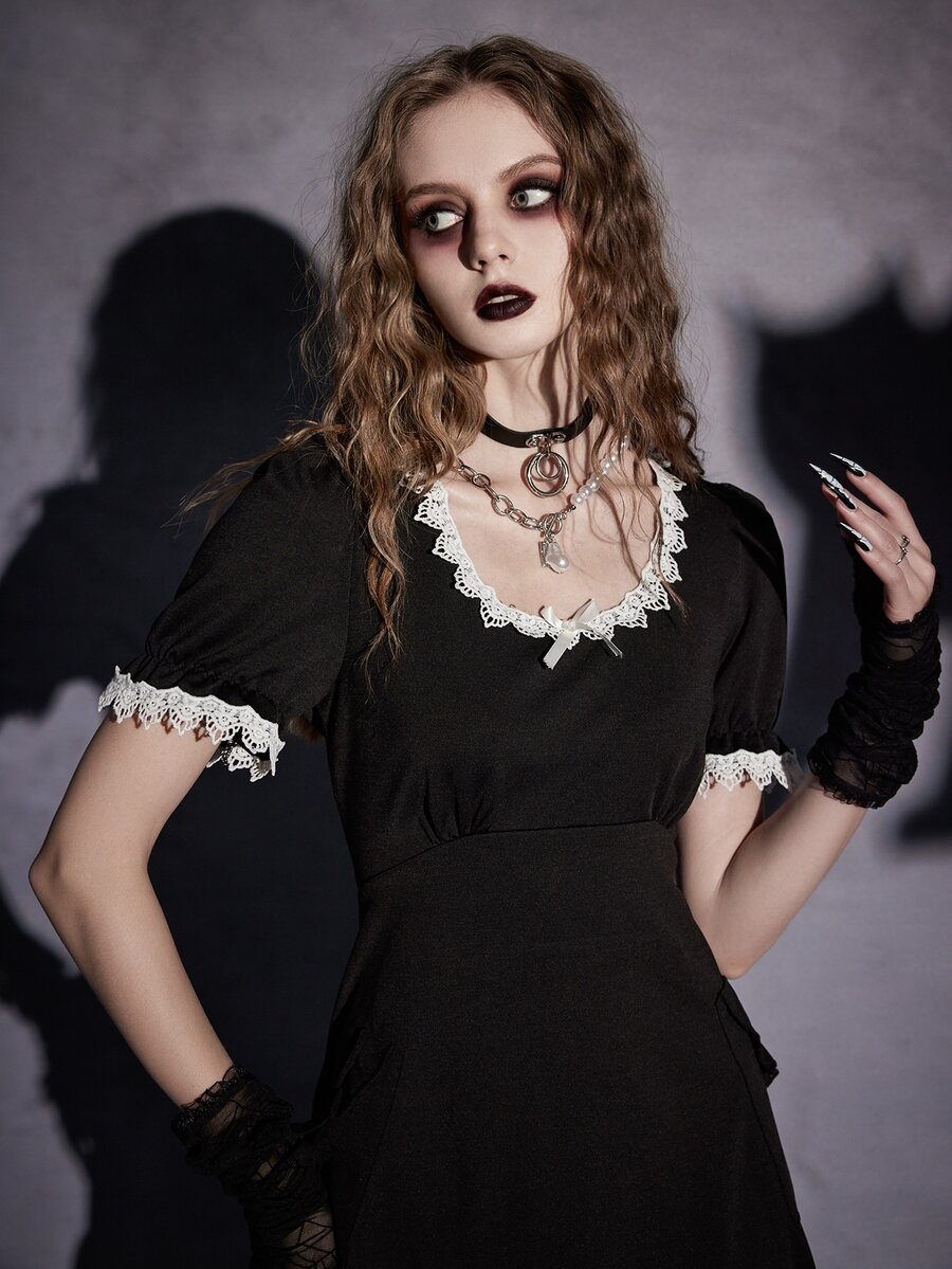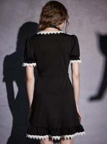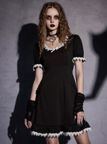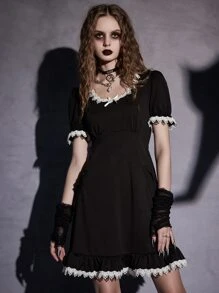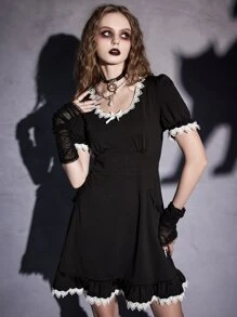 Goth Abiti pizzo a contrasto con manica a sbuffo