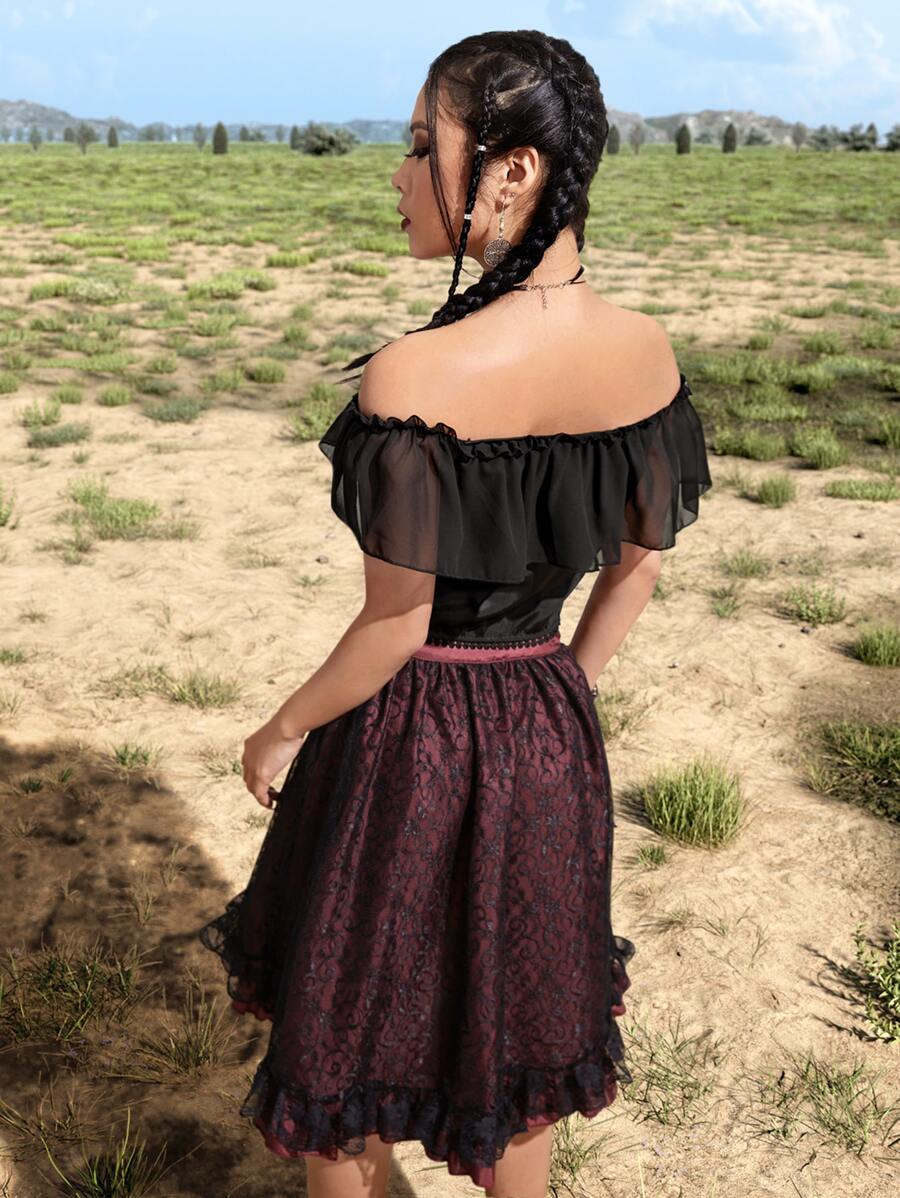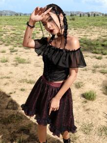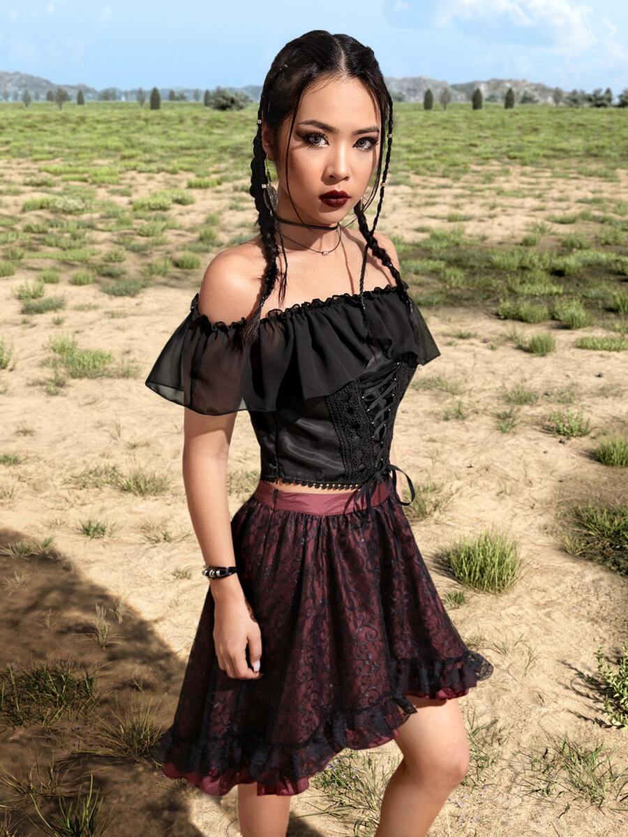 Goth Top corto monocolore con lacci con volant
