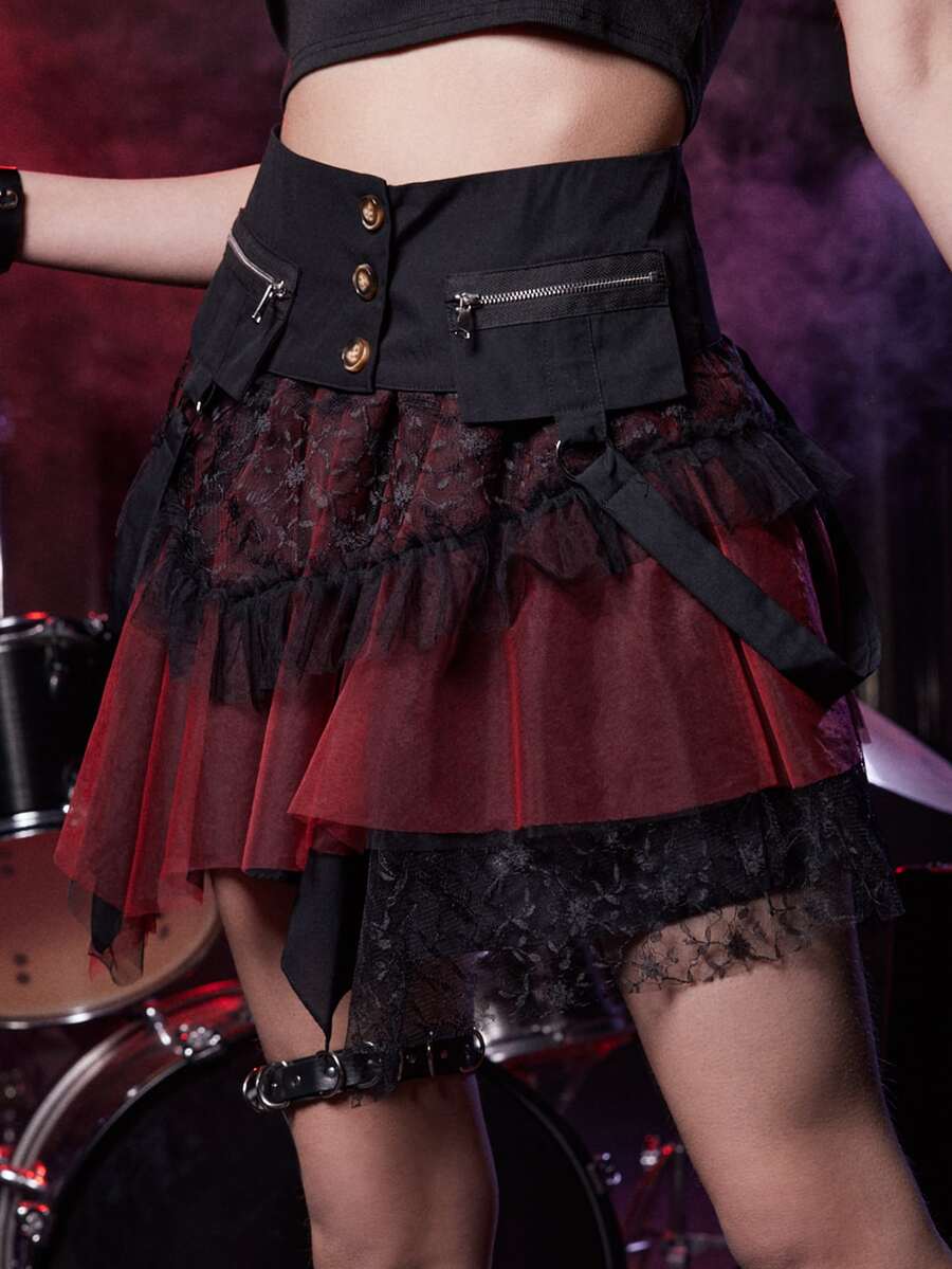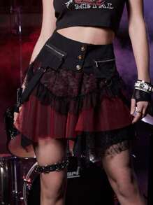 Grunge Punk Gonne asimmetrico tulle a contrasto