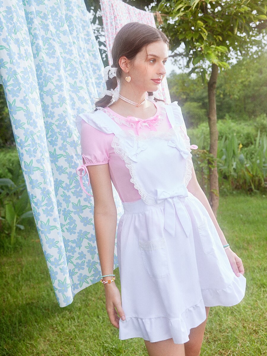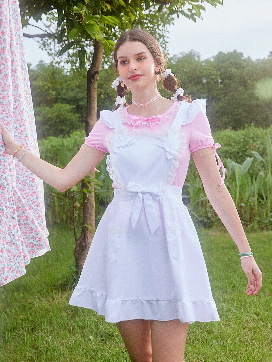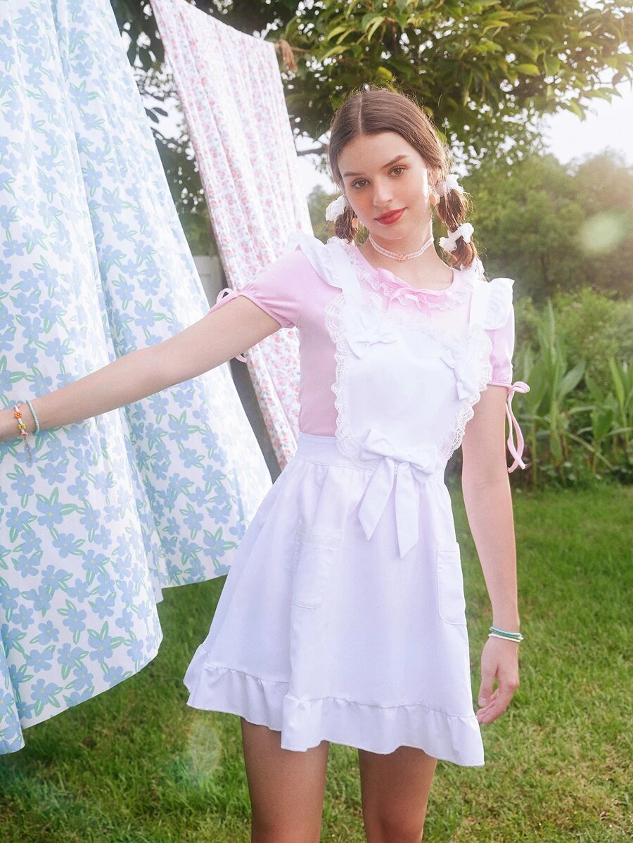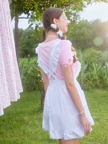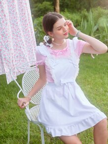 Kawaii Abiti monocolore fiocco frontale con volant senza maglietta