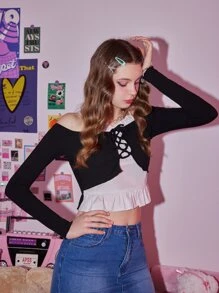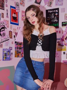 Kawaii Maglietta 2 in 1 con lacci con volant