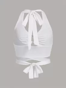 Sweetness Top halter monocolore incrociato con nodo dietro