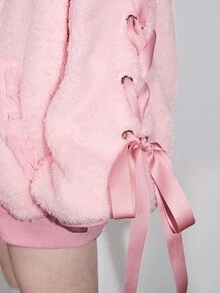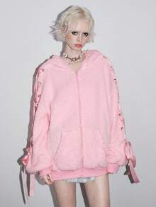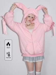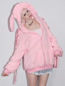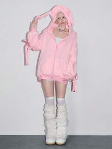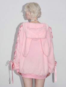 Kawaii Felpa da donna con decorazione in pizzo e fiocco a forma di orecchie di coniglio