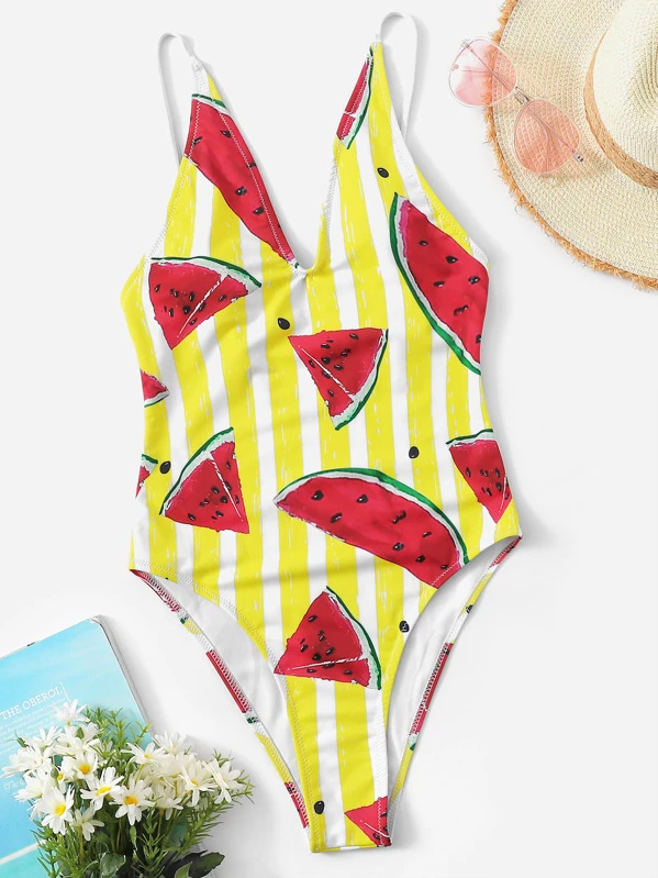 Costume da bagno a righe con stampa casuale