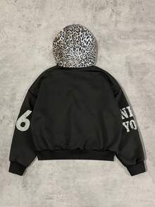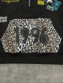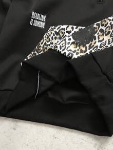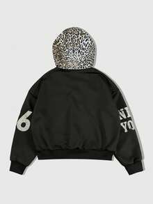 Street Life Felpa con cappuccio retrò a blocchi di colore con stampa leopardata di stile americano