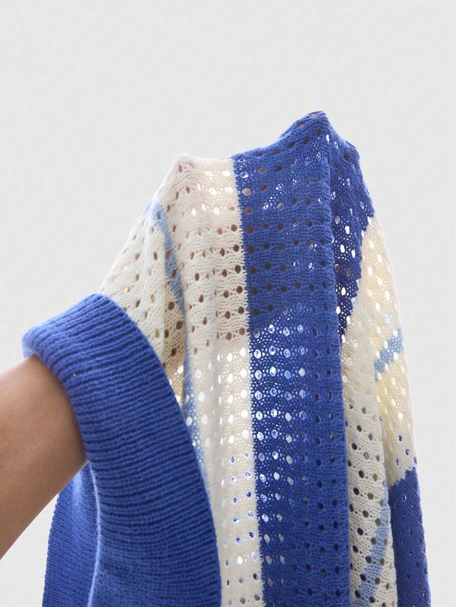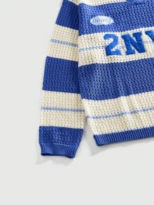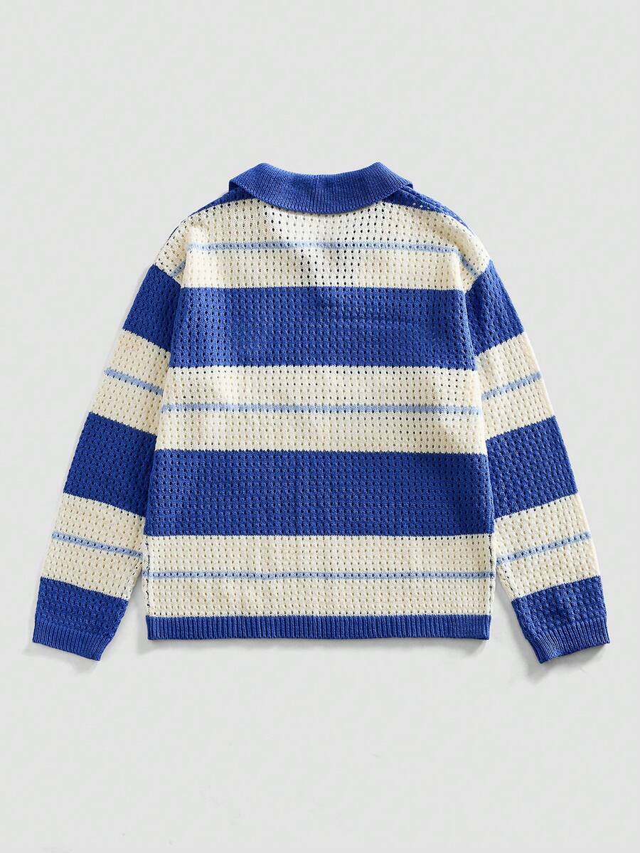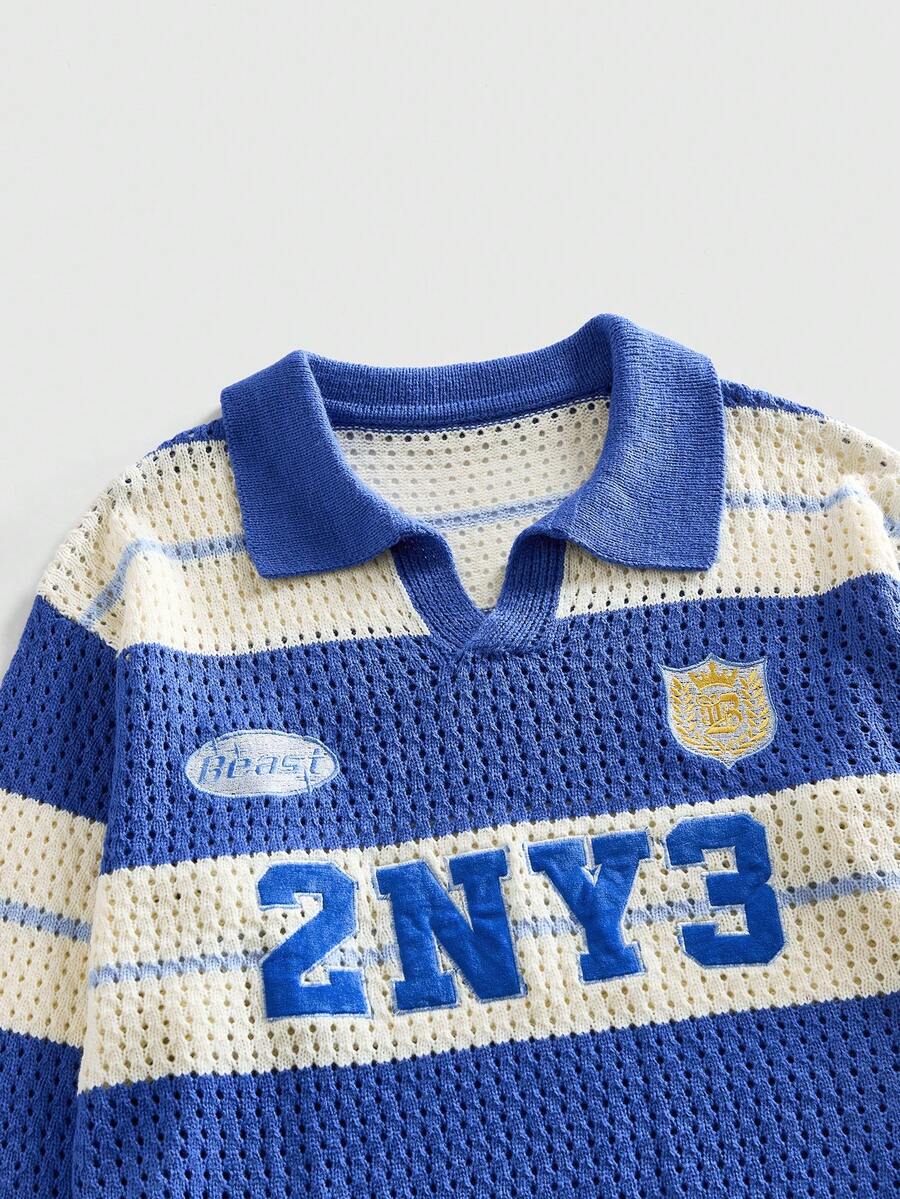 Camicia polo lavorata a maglia con motivo a righe blu e bianco in stile retrò americano, pullover casual e ampio con stampa 2NY3