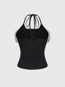 Canotta aderente retrò Y2K sexy con patchwork, stampa a lettere incrociate in pelliccia sintetica e collo alto