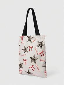 Kawaii Borsa a tracolla riutilizzabile in tela con stampa all-over a motivo di occhi/luna/stelle, design adatto per lo shopping