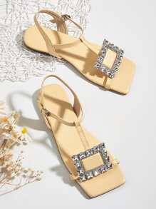 Sandali con cinturino a T decorato con strass