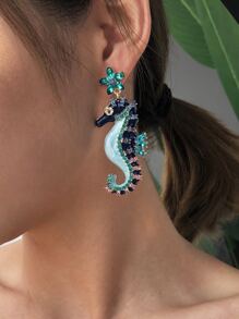 Orecchini pendenti con cavalluccio marino in strass