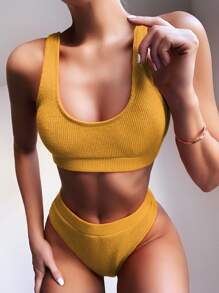 Set Bikini A Vita Alta Con Ruches Per Lestate In Spiaggia