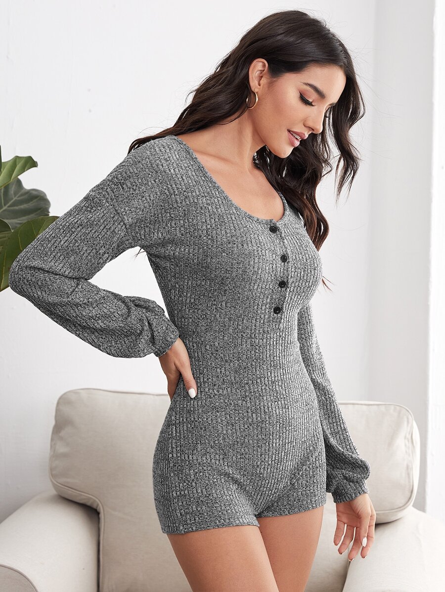 Tuta lounge a coste con bottone frontale con scollo rotondo