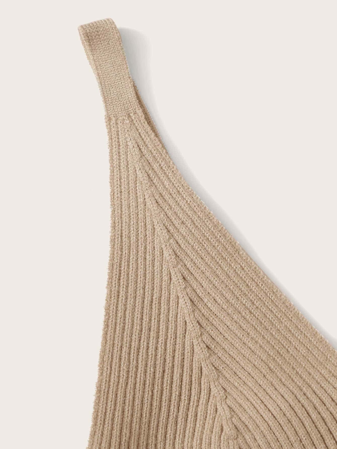 Top corto a costine con scollo a V