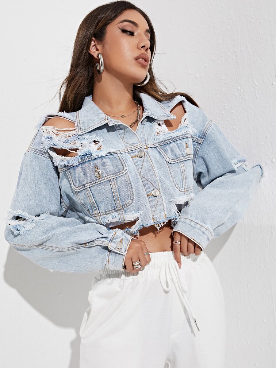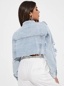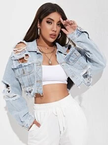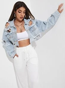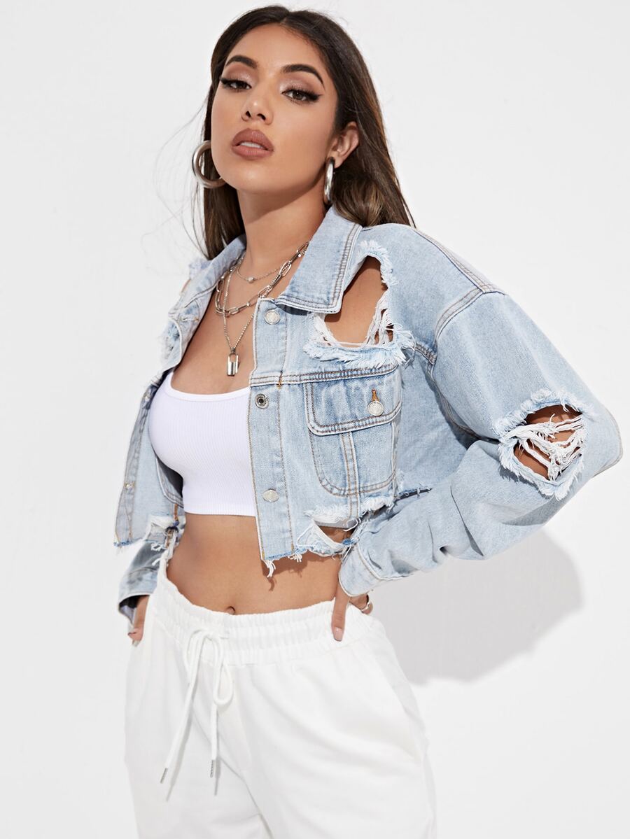 Giacche in denim e Cappotti Strappato Colore unico Casual