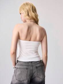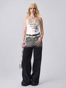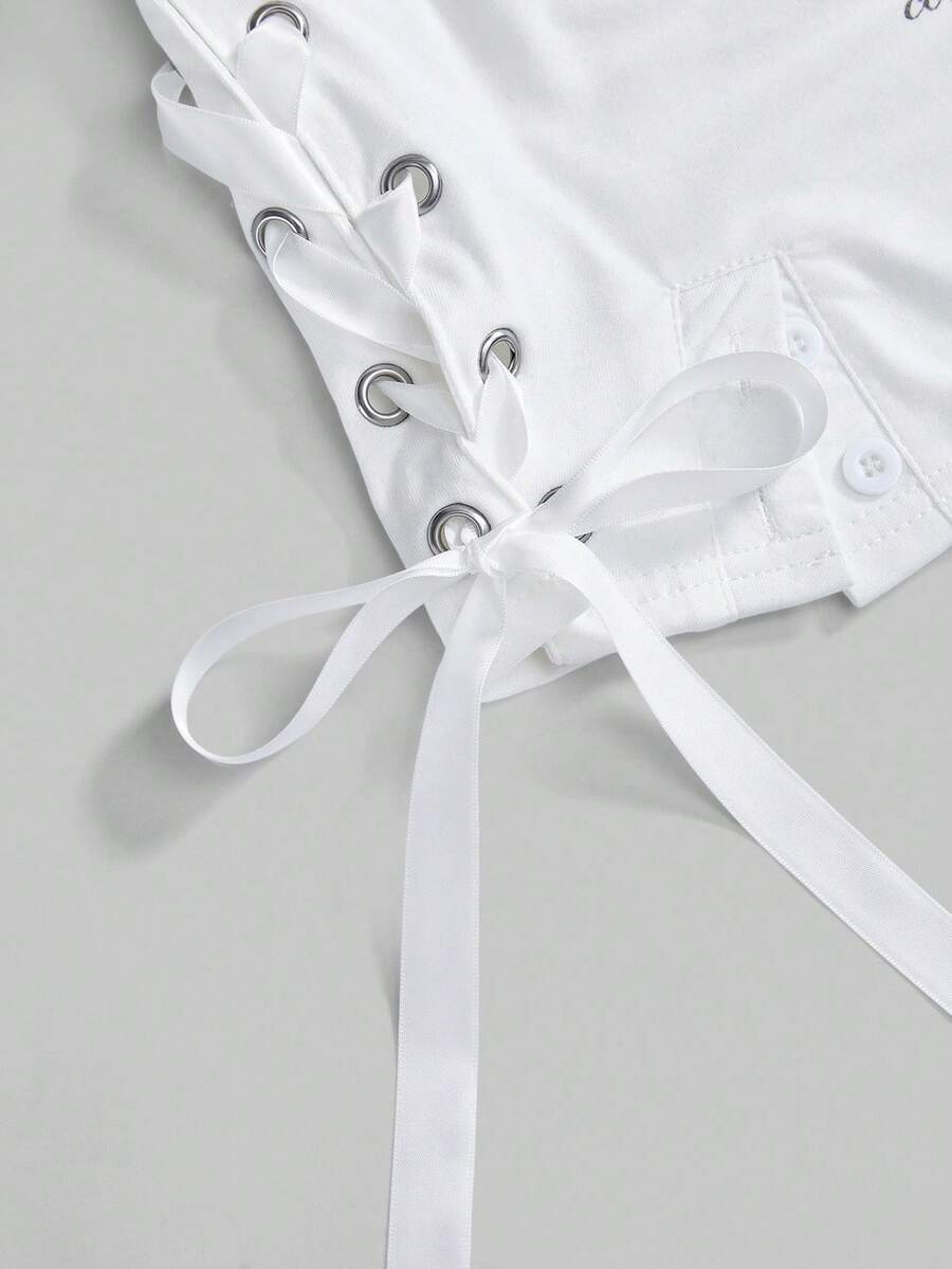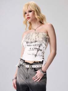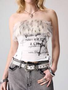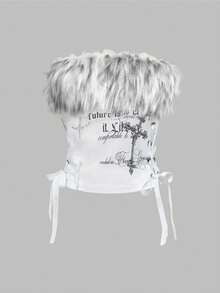 Grunge Punk Top tubo da donna con stampa di lettere, decorato con borchie e pelliccia in stile romantico punk retrò, con lacci laterali, adatto per l'autunno/inverno come capo di abbigliamento a strati
