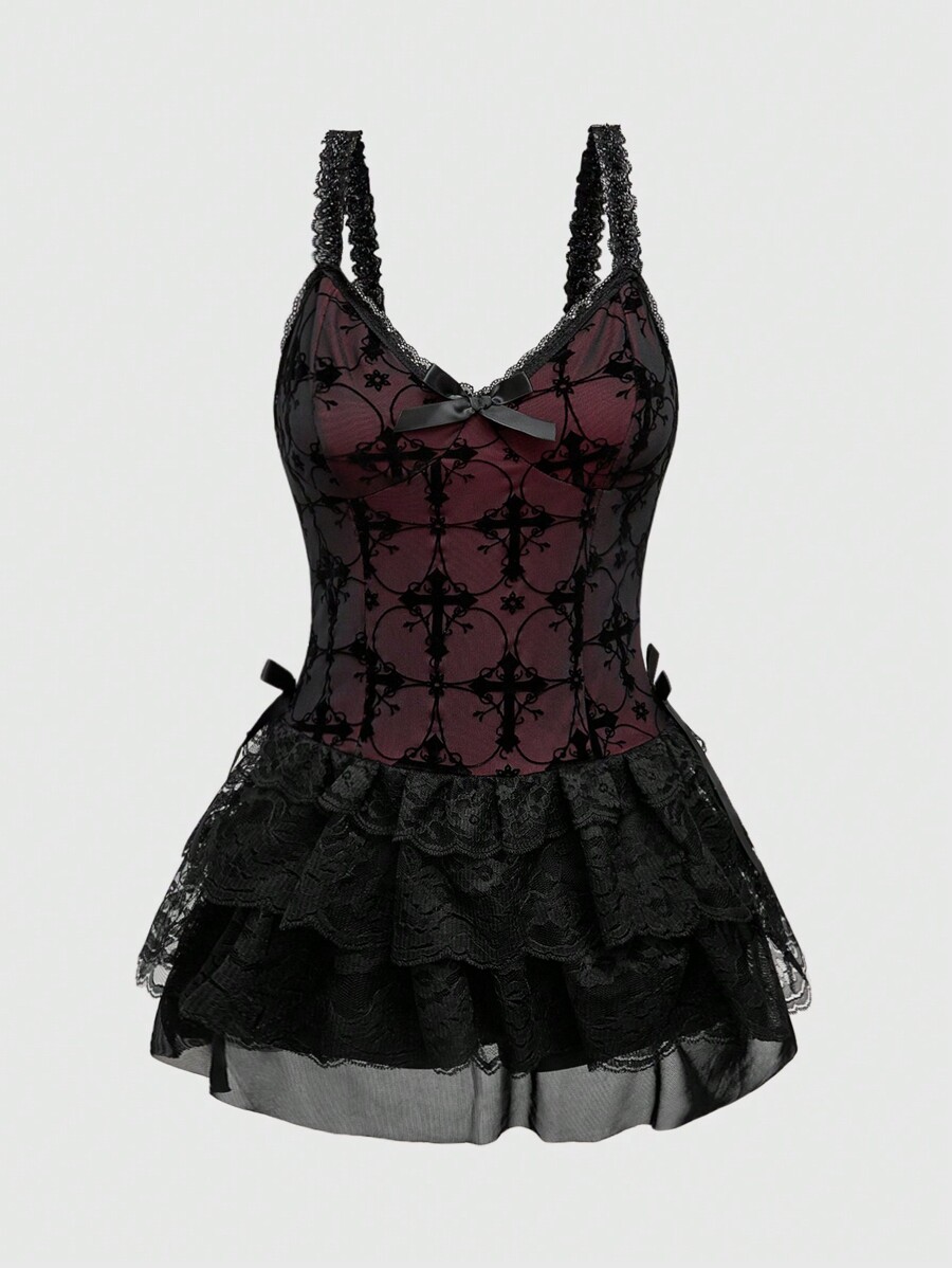 Goth Abito sottoveste per donna con incrocio romantico vintage, in stile gotico, con ruches in velluto e rete a strati per la vita, adatto per il Capodanno