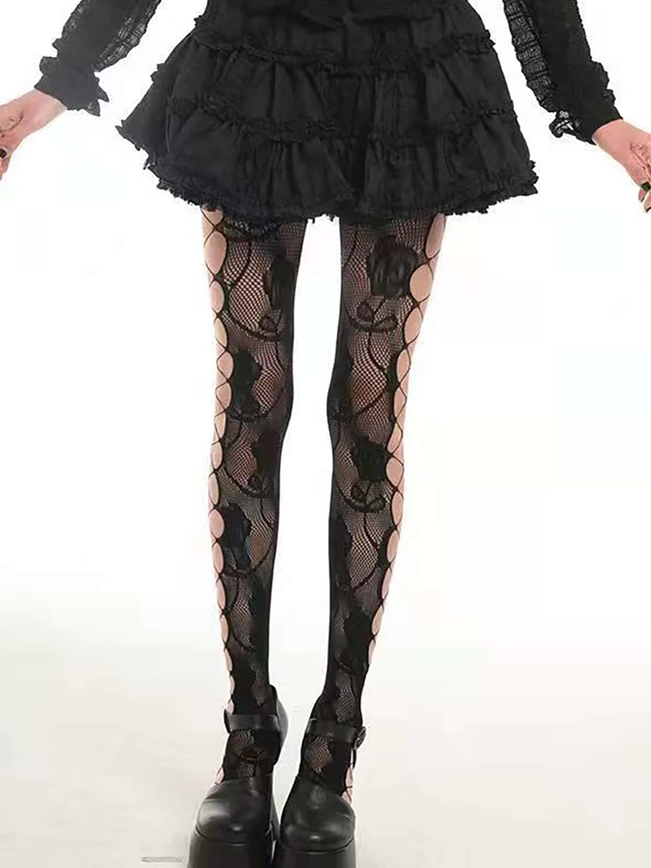 Collant a rete da pesce con motivo rosa